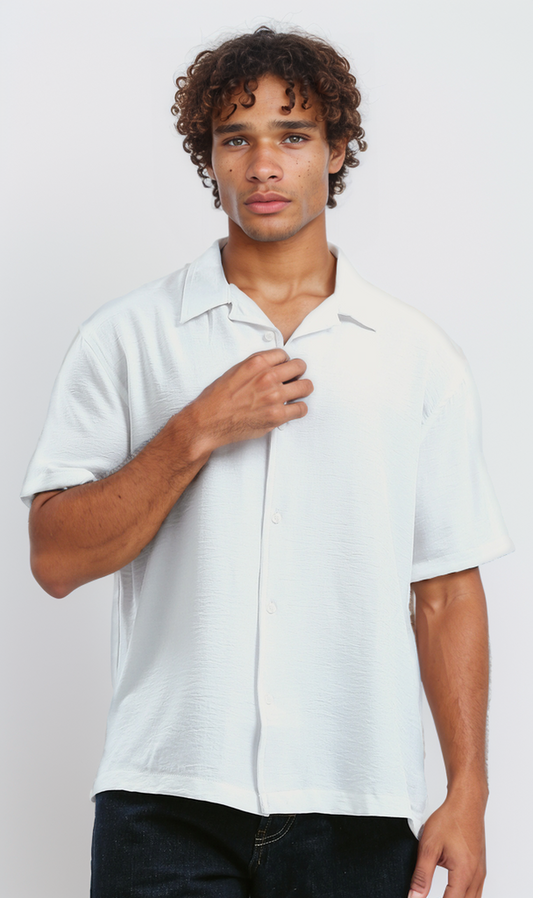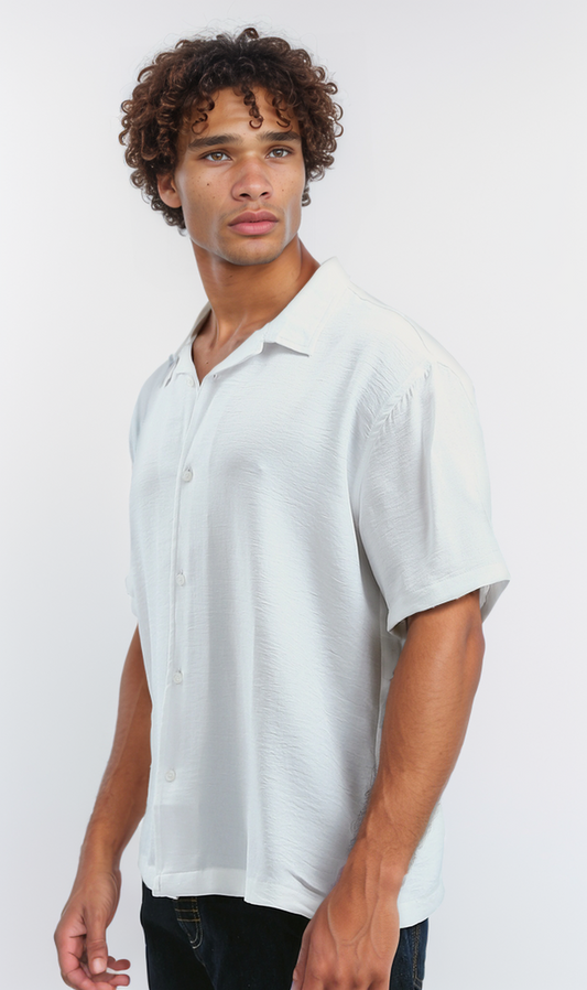 O203316 - Classic Collar Elbow Sleeves Summer Shirt - Off-White