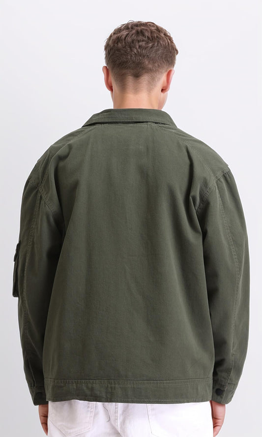R214163 - Solid Bomber Jacket with Multi Pockets - Dark Khaki