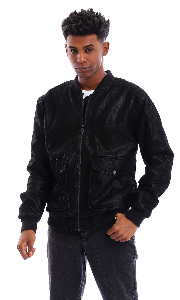 98096 Buttoned Self Bleached Polo Shirt - Black