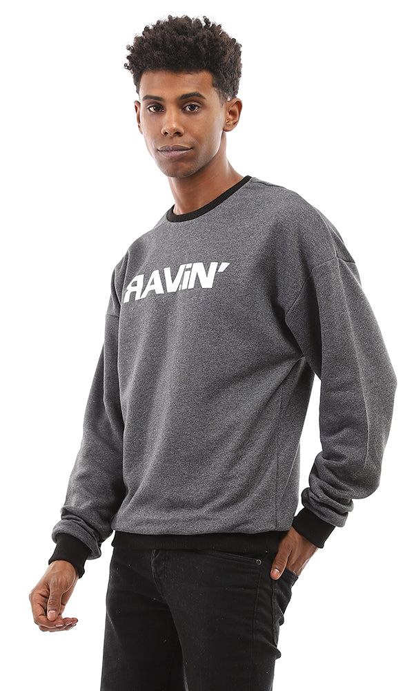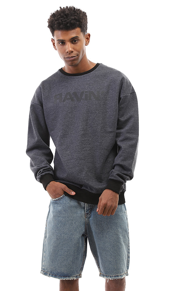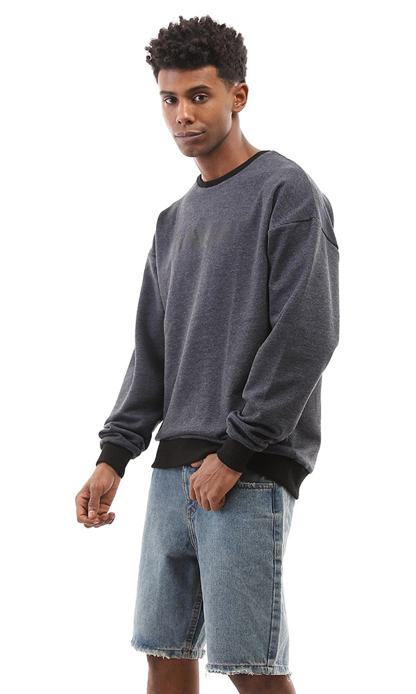 O165984 Printed & Heather Slip On Tee - Grey & Black