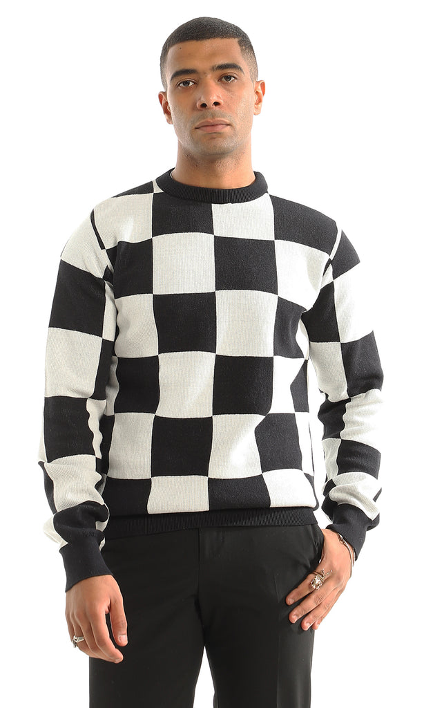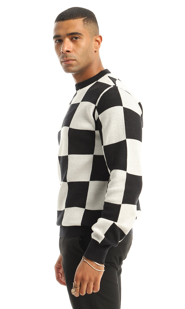 O164738 Black & White Self Patterened Slip On Tee