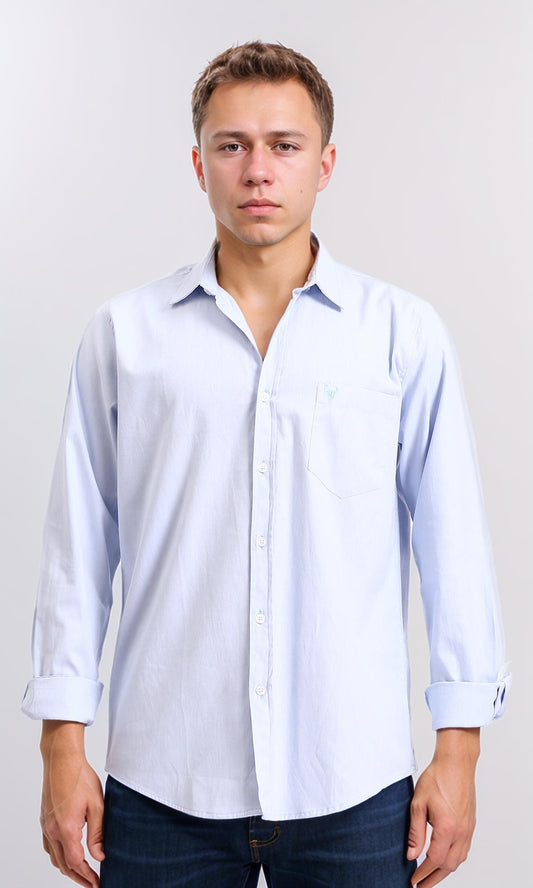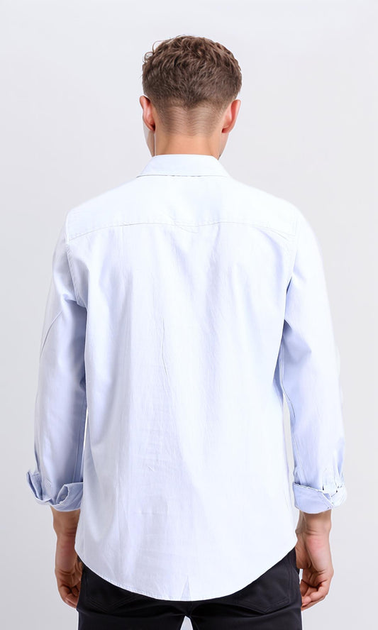 R211095 - Solid Elbow Sleeves Classic Shirt - Light Blue