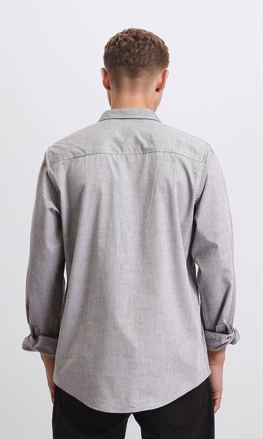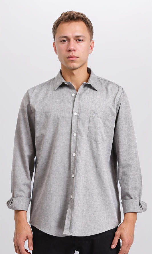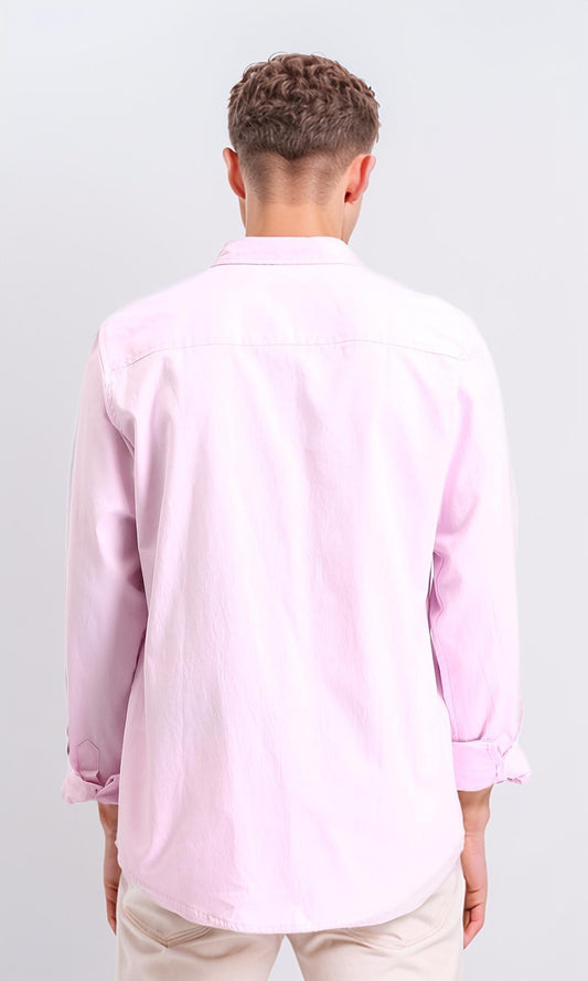 R211098 - Solid Elbow Sleeves Cotton Shirt - Light Olive