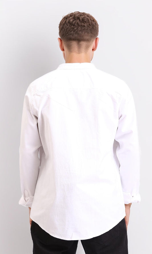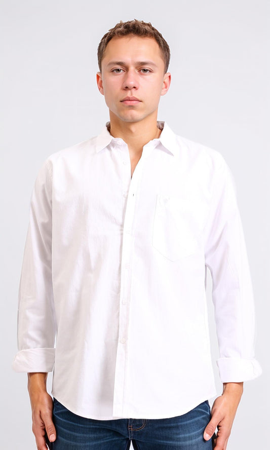 R211097 - Solid Elbow Sleeves Classic Shirt - White