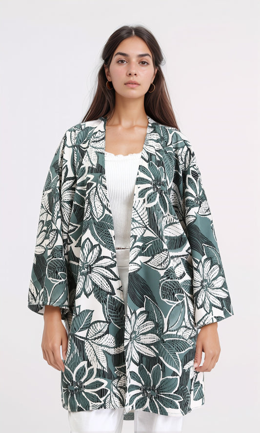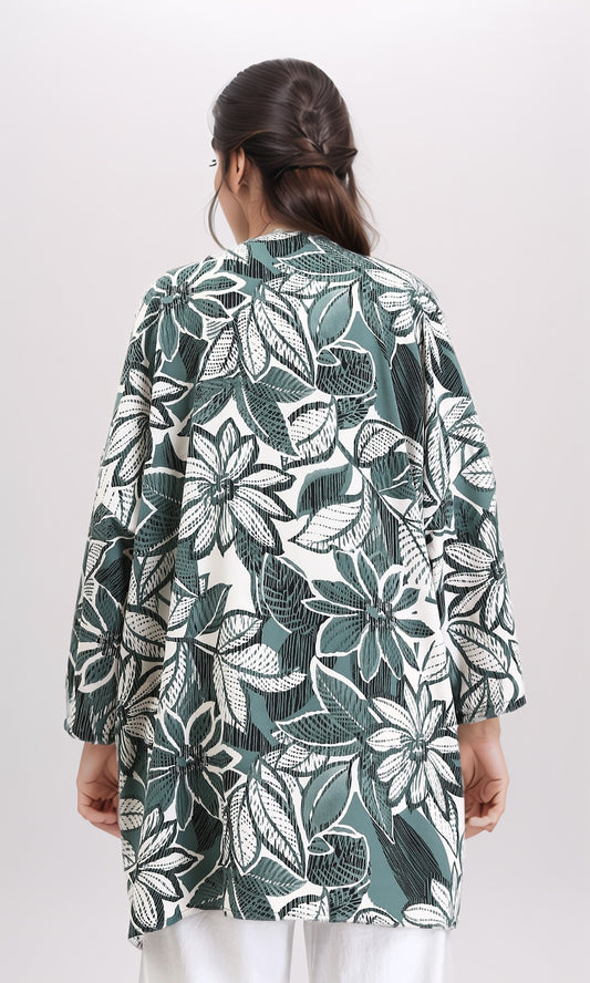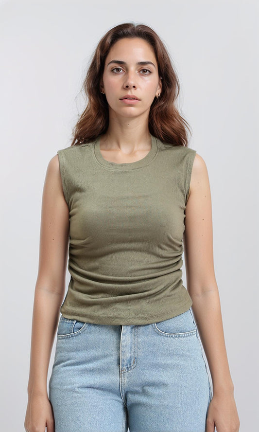 R215288 - Tri-Tone Striped Winter Pullover - Dark Green, White & Beige