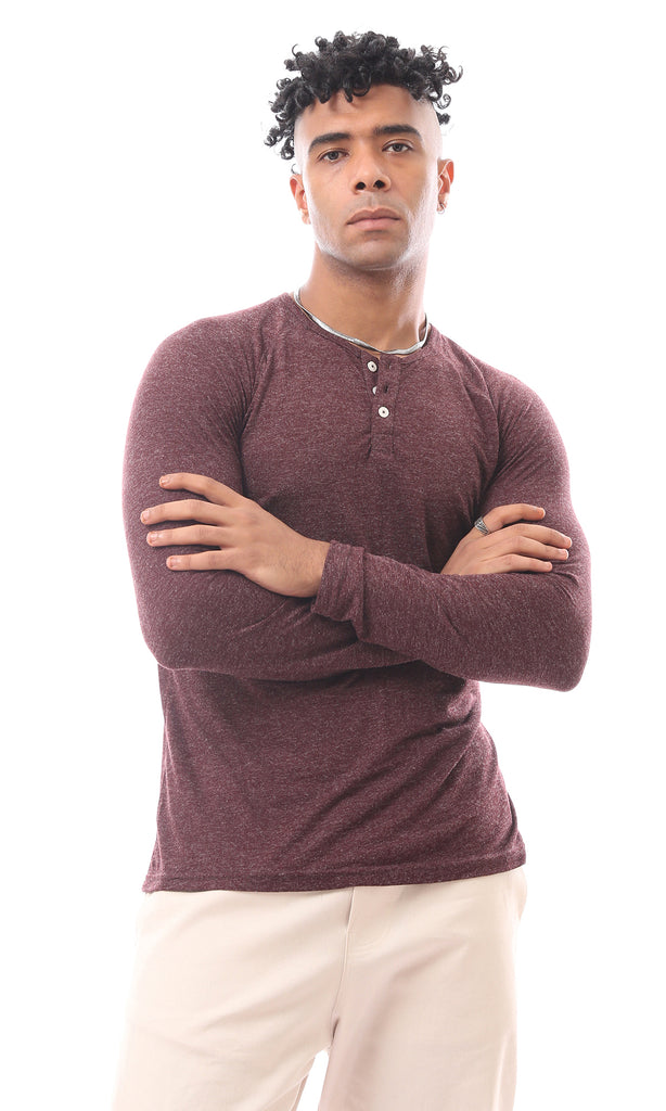 R213750 - Long Sleeves Solid Buttoned Henley Shirt - Black