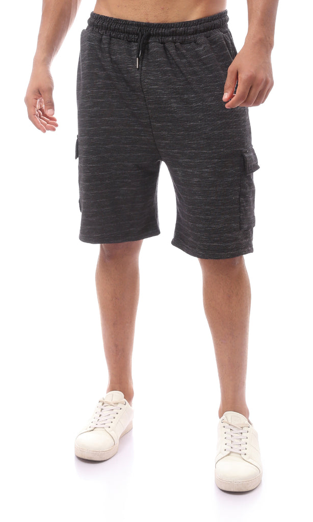 R212358 - Self Pattern Slip On Drawstring Shorts - Grey