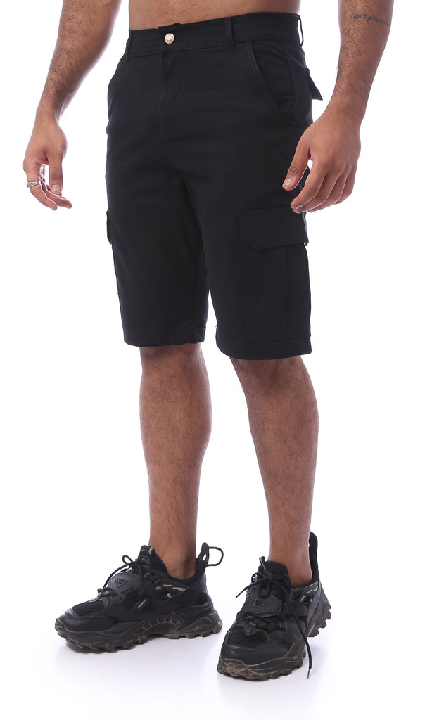 R213142 - Solid Pattern Slip On Casual Shorts - Black