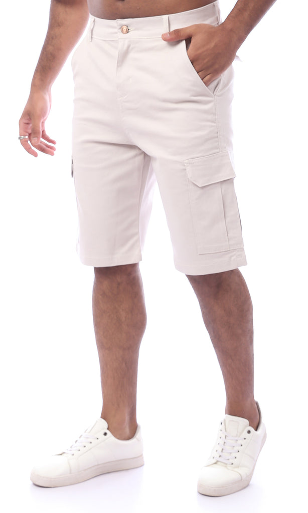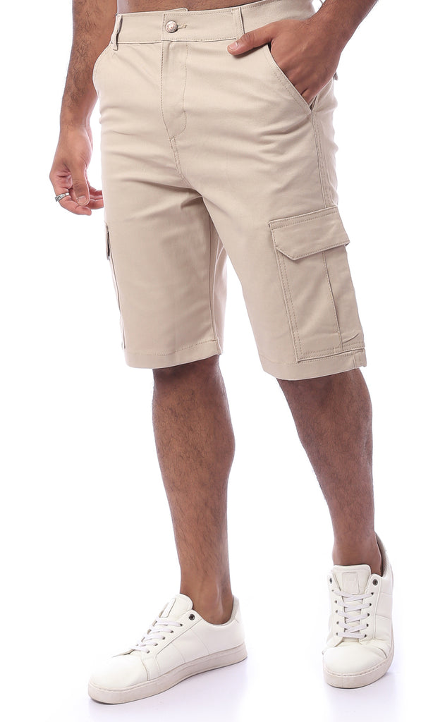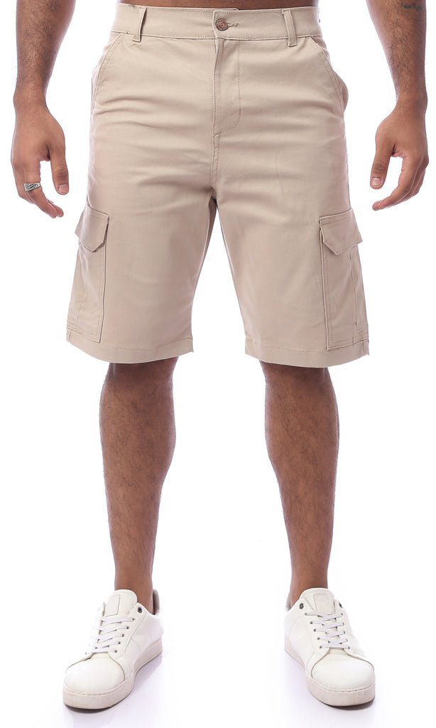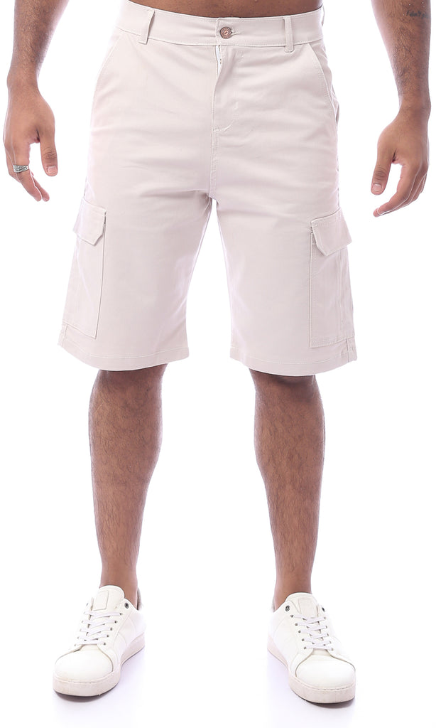 R213140 - Solid Pattern Slip On Casual Shorts - Beige