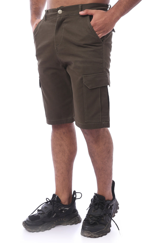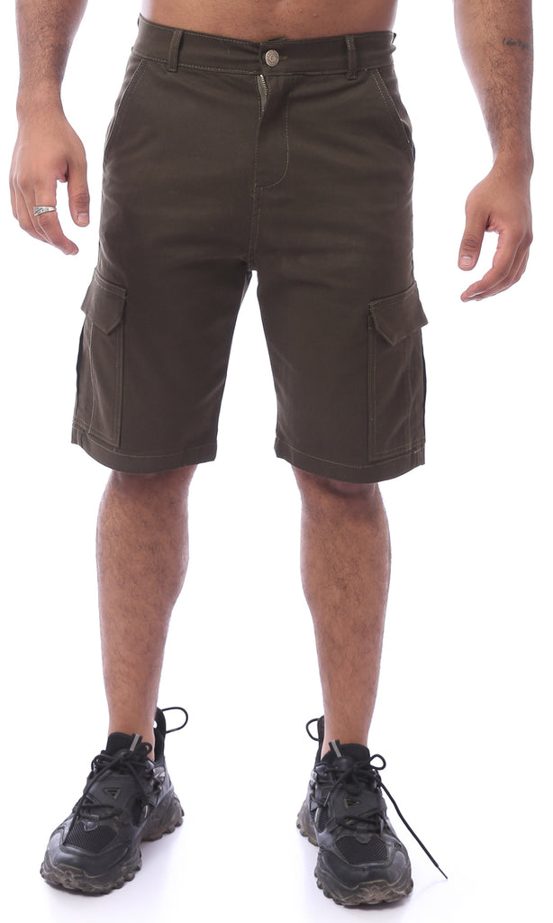 R209461 - Casual Solid Cotton Shorts - Dark khaki