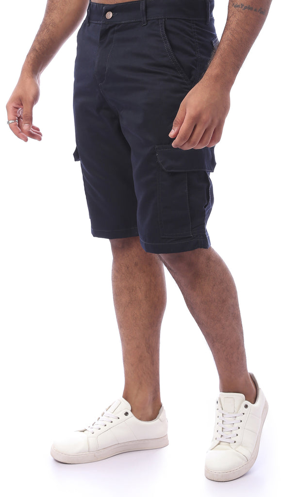 R209460 - Casual Solid Cotton Shorts - Navy Blue