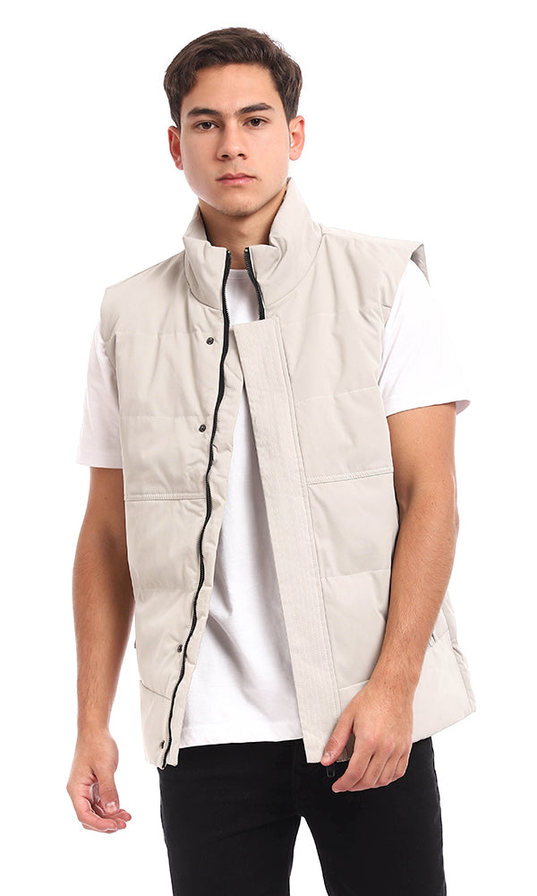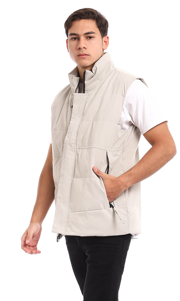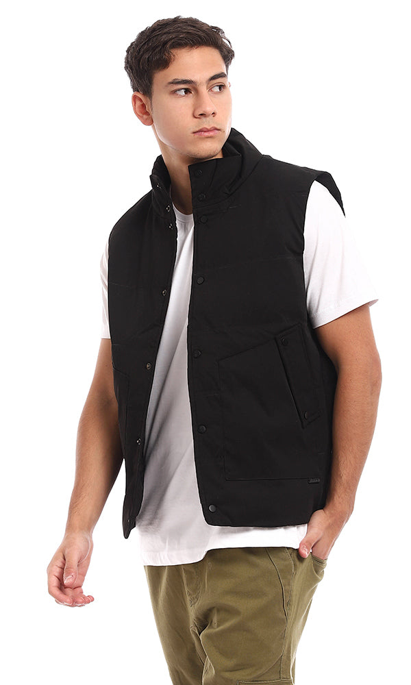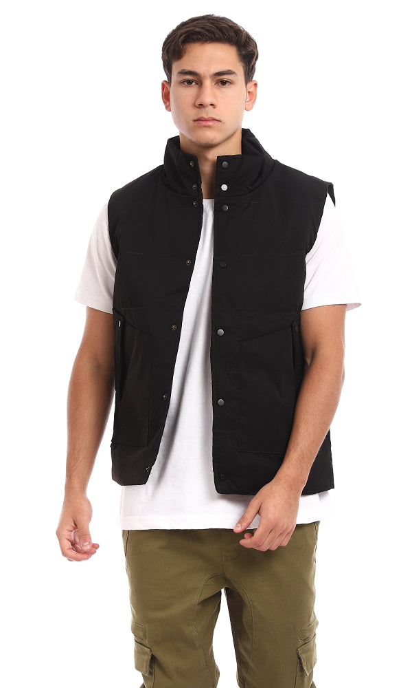 R213126 - Stand Collar Sleeveless Bomber Vest - Black