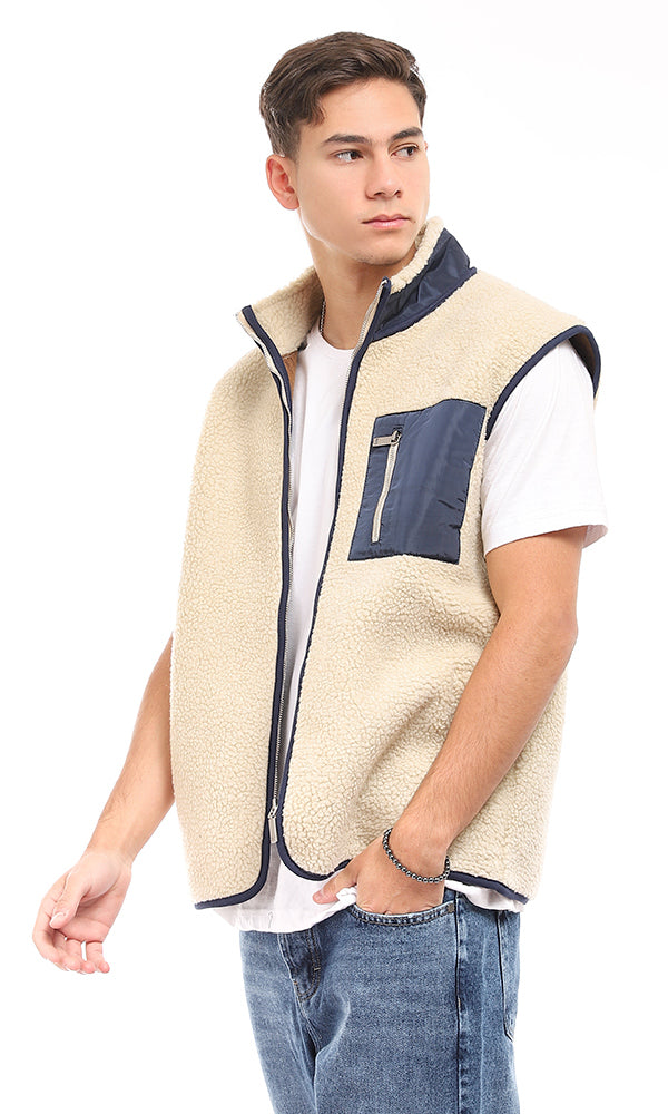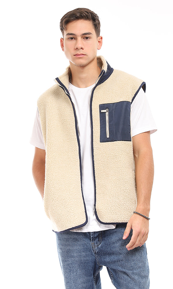 R213304 - Sleeveless Solid Vest with Pockets - Navy Blue