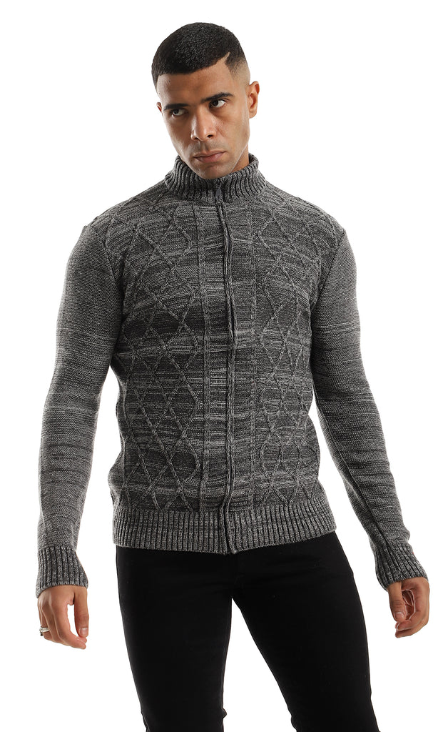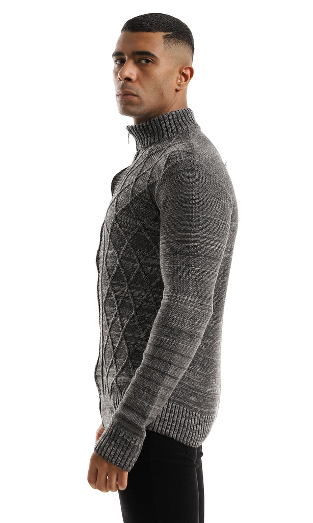 R211352 - Front Zip-Up Winter Quilted Jacket - Dark Grey