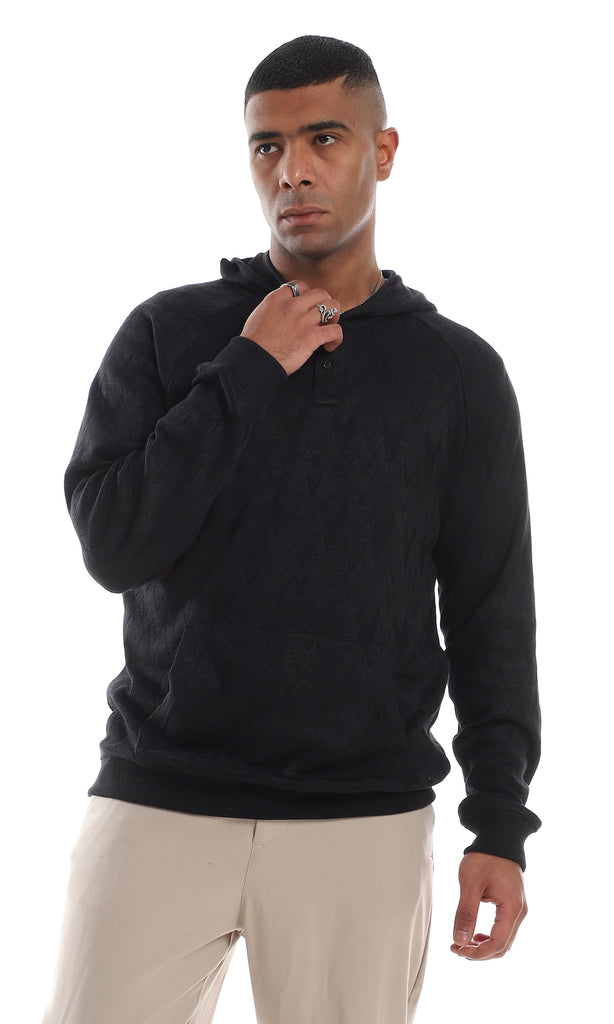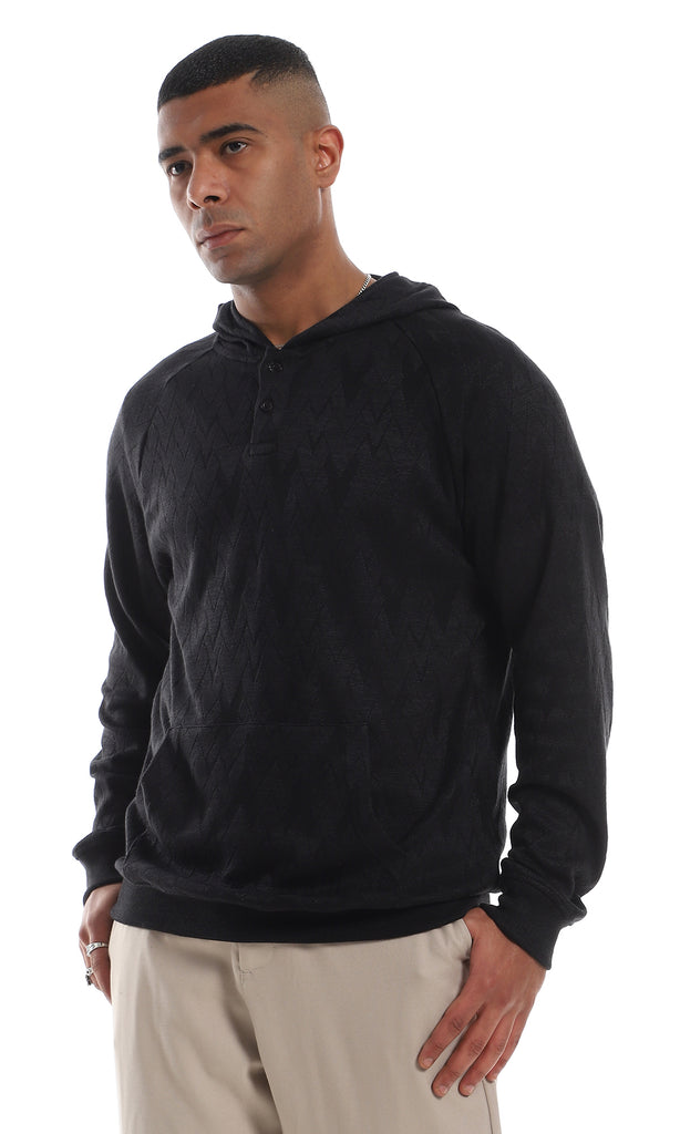 R214805 - Long Sleeves Casual Textured Hoodie - Heather Black