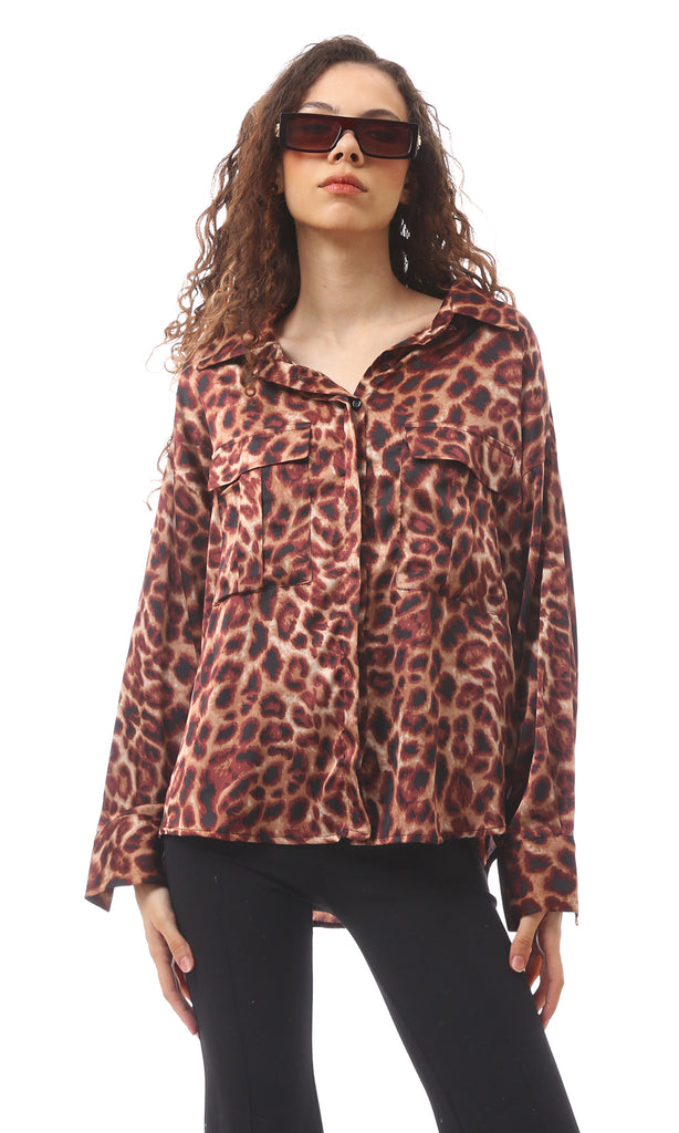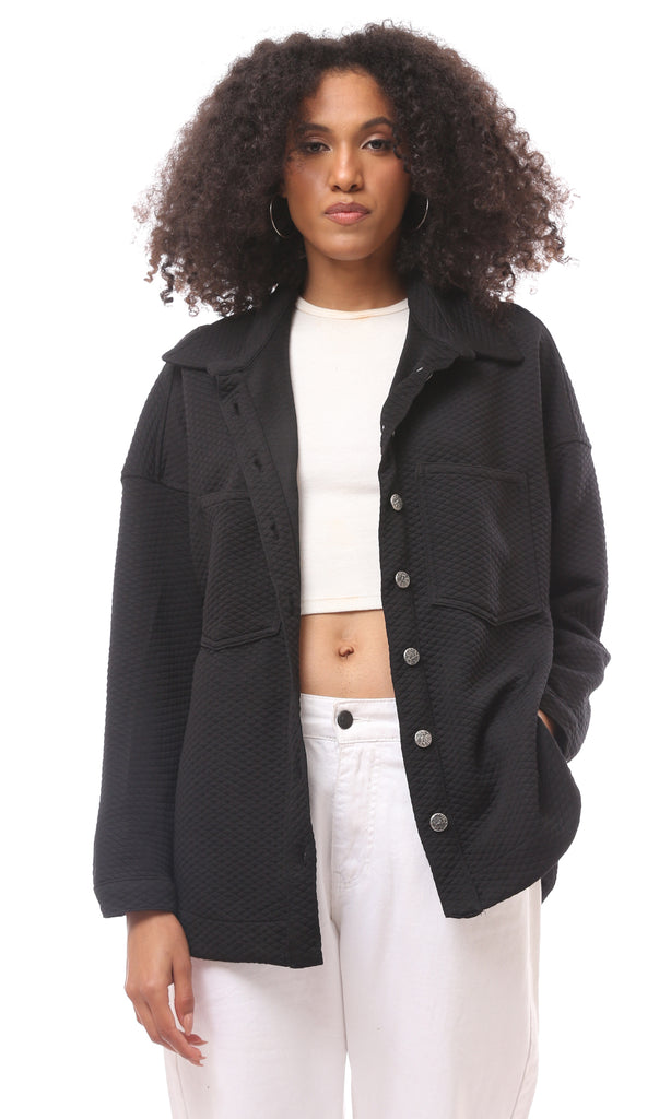 R211665 - Self Pattern Buttoned Long Shirt - Coral