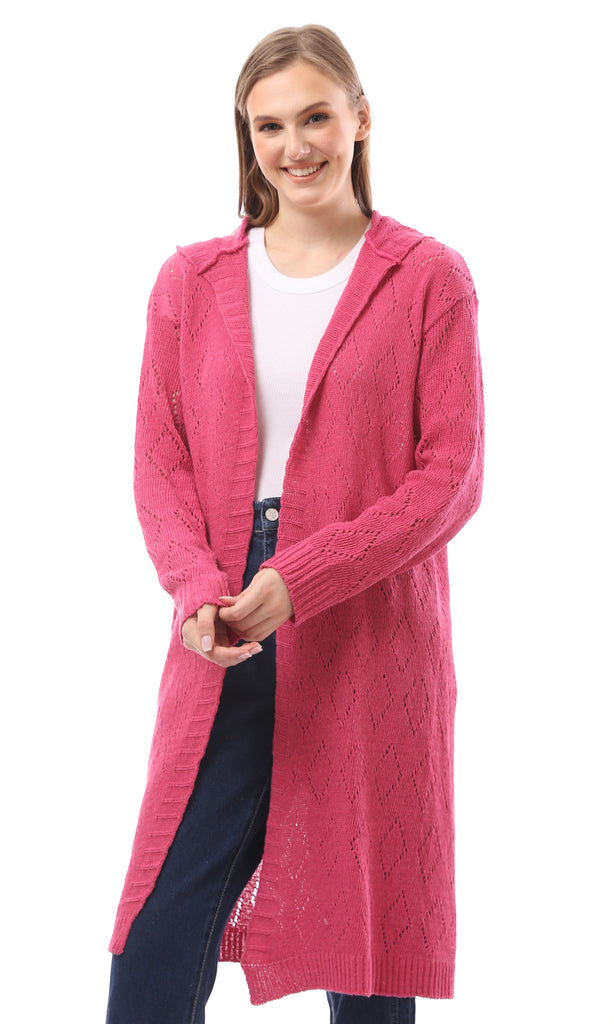 R214313 - Braided Neckline with Fringes Cardigan - Burgundy