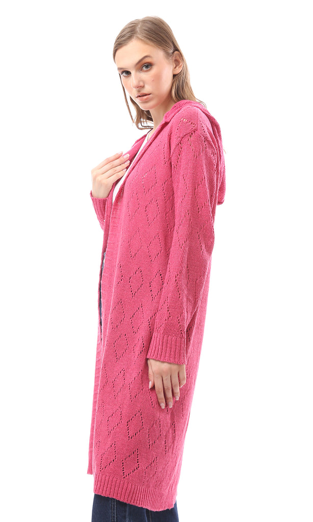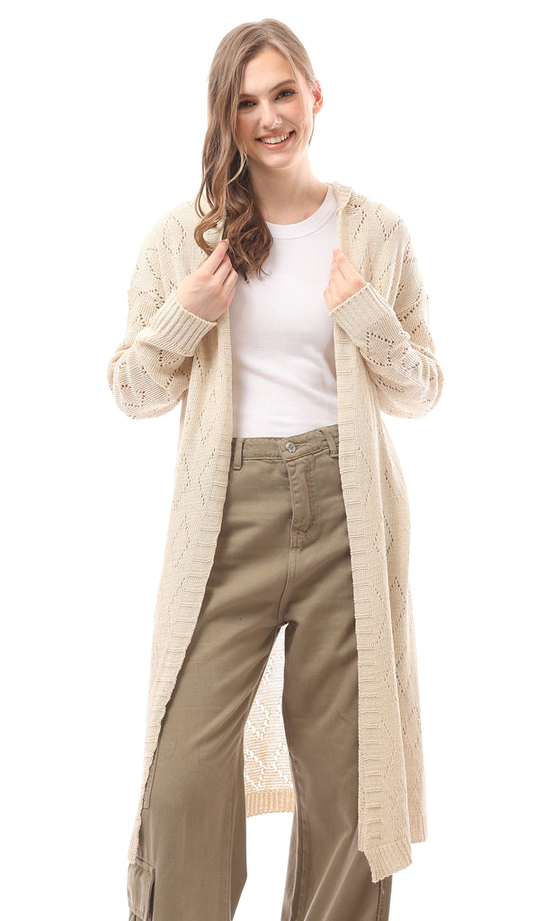 R213646 - Perforated Knit Buttoned Cardigan - Light Beige