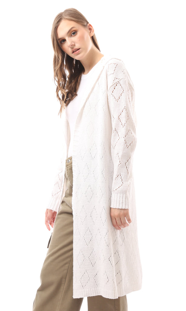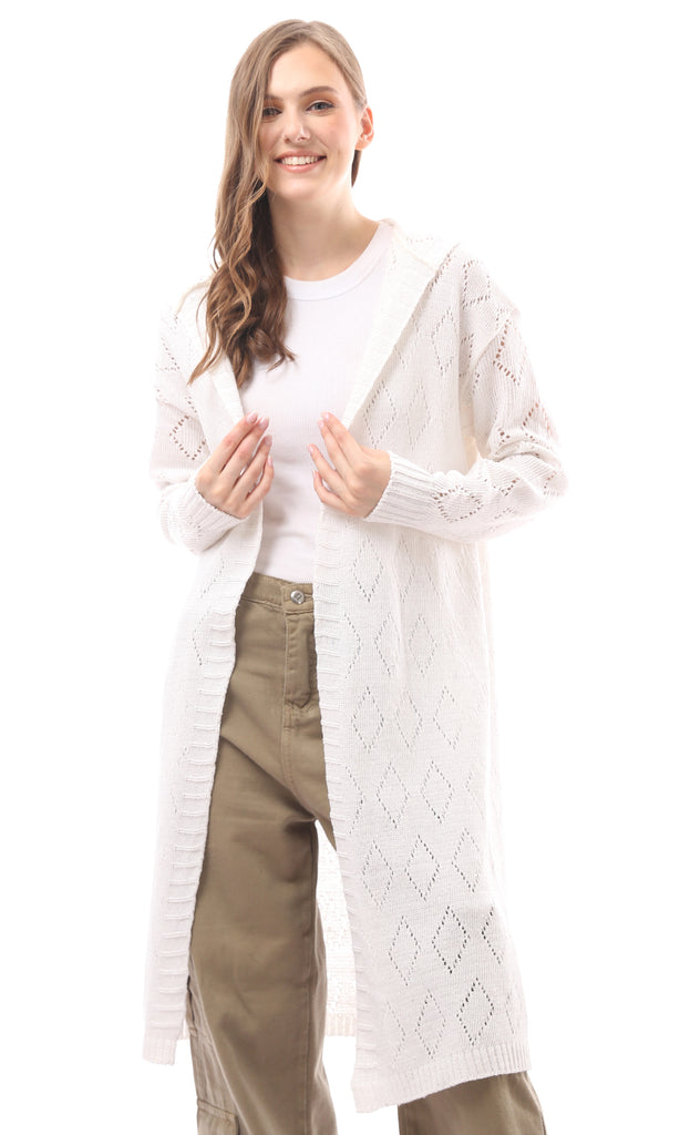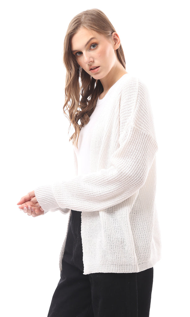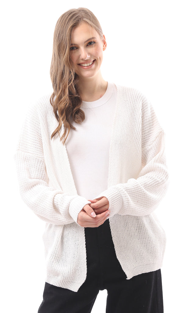 R212644 - Open Neckline Knitted Cardigan - Off-White