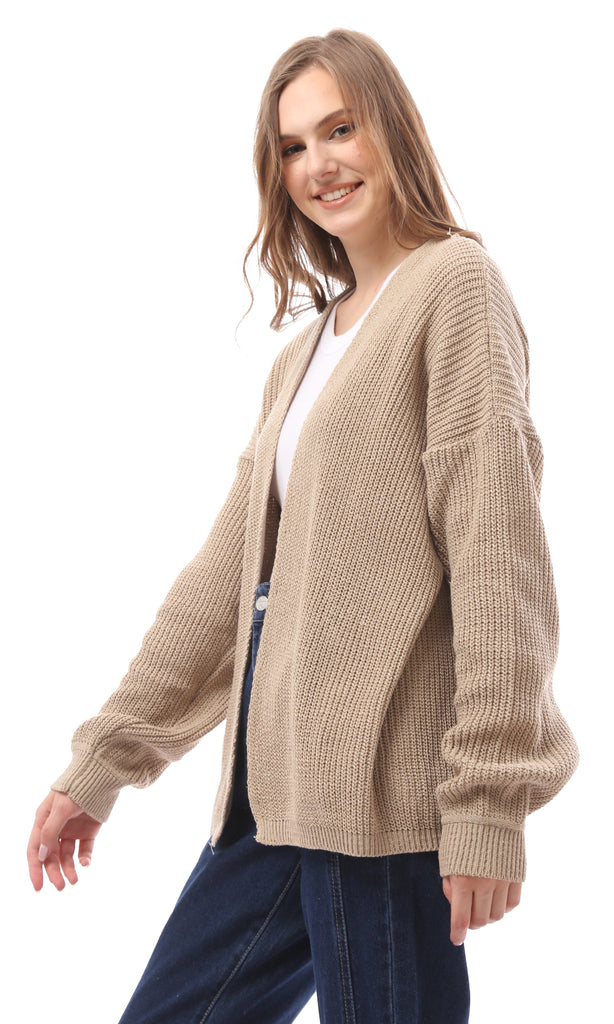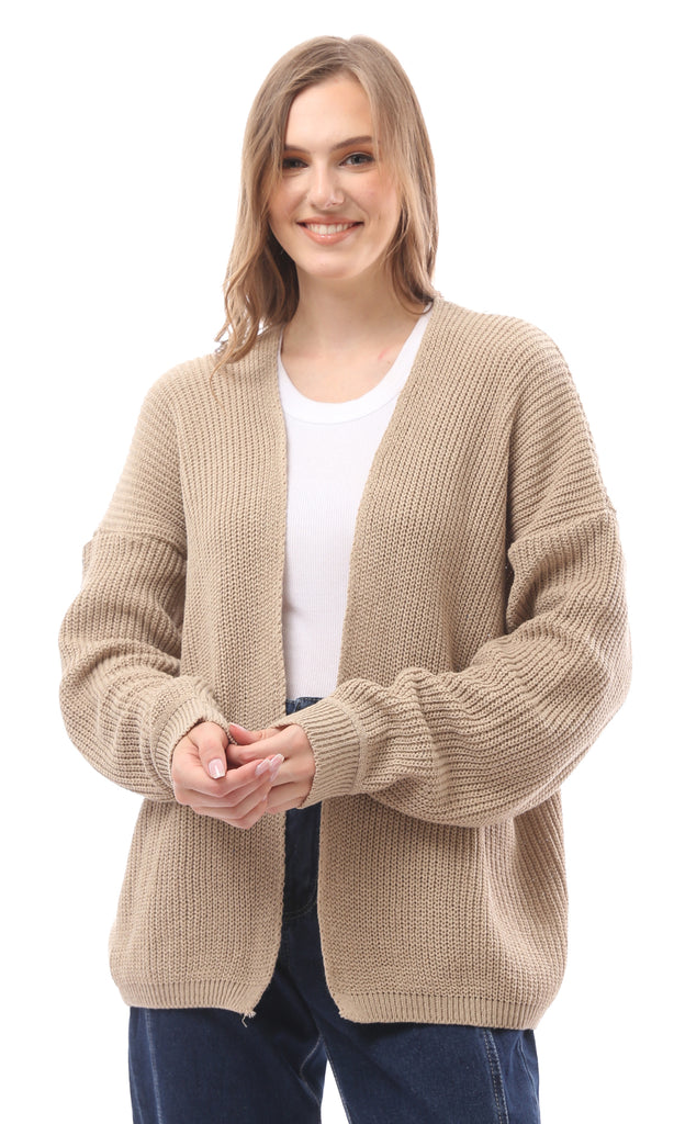 R212645 - Open Neckline Knitted Cardigan - Light Beige