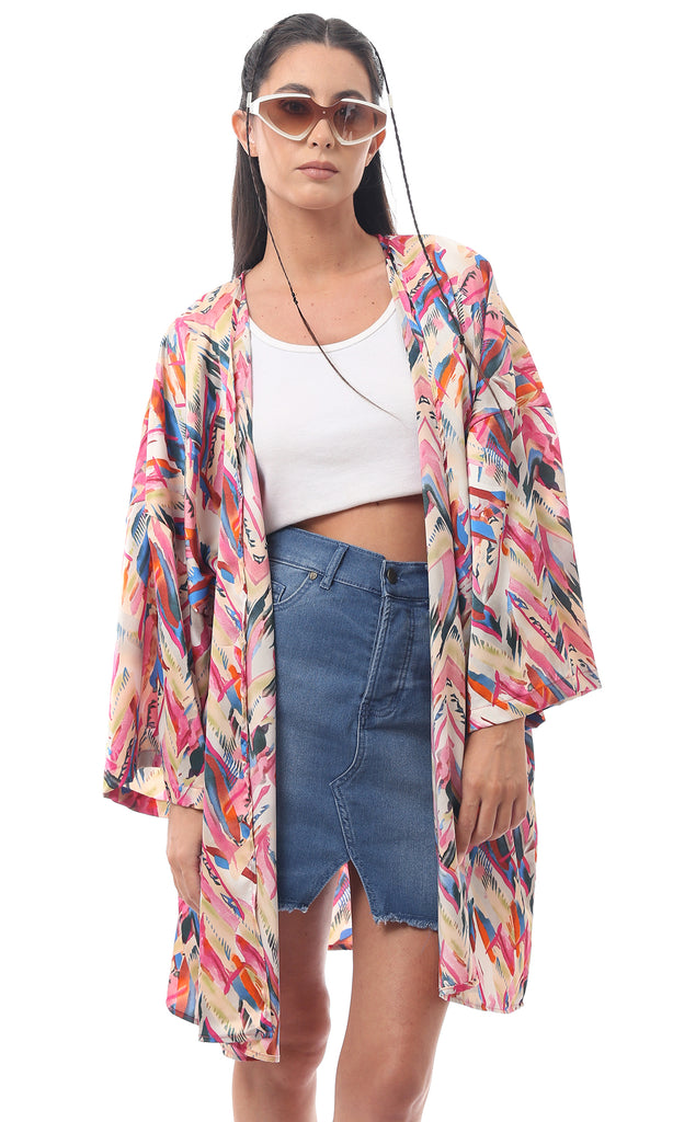 R214803 - Long Sleeves V-Neck Cardigan - Multicolor
