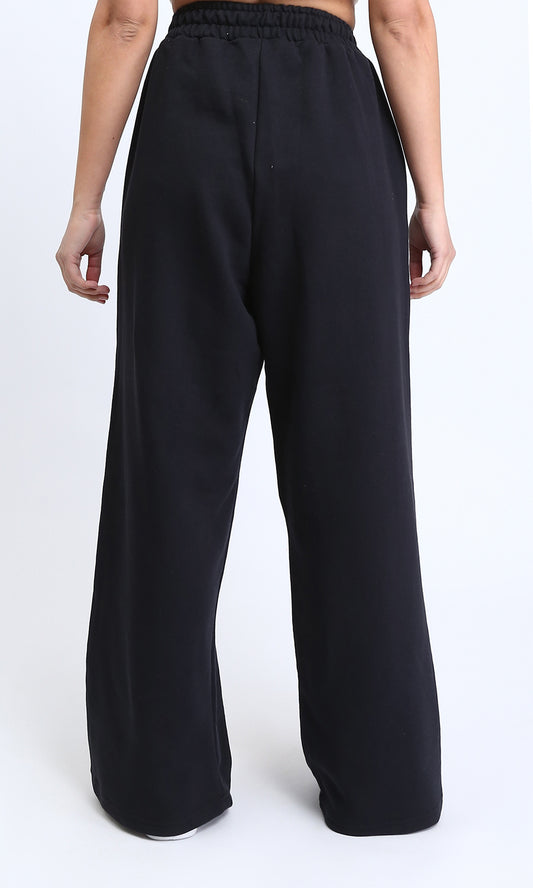 R212302 - Elastic Waist with Drawstring Cotton Sweatpants - Black