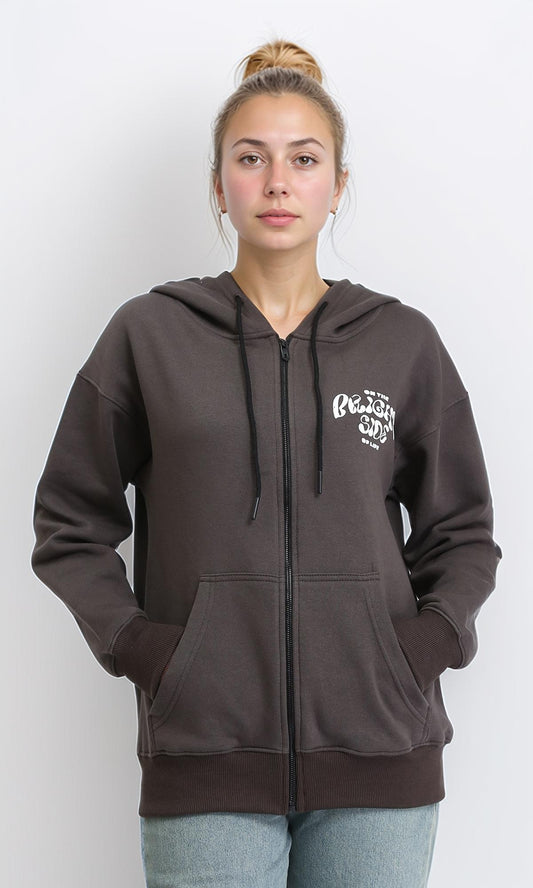 R215080 - Drawstring Hoodie with Front & Back Print - Dark Brown