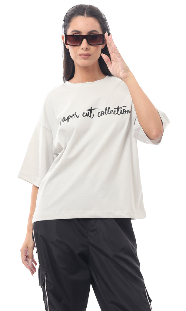 R215880 - Solid Relaxed Fit Cotton Tee - Light Grey