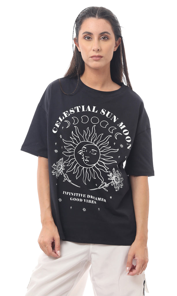 R215749 - Short Sleeve Printed Regular Tee - Black