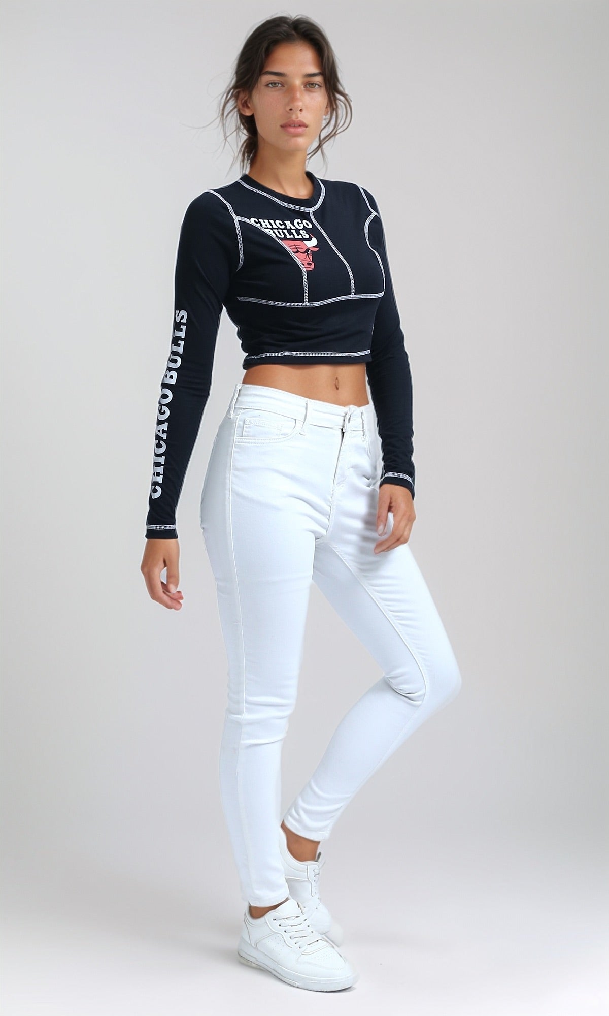O182849 - Long Sleeves Printed ''Chicago Bulls'' Tee - Black