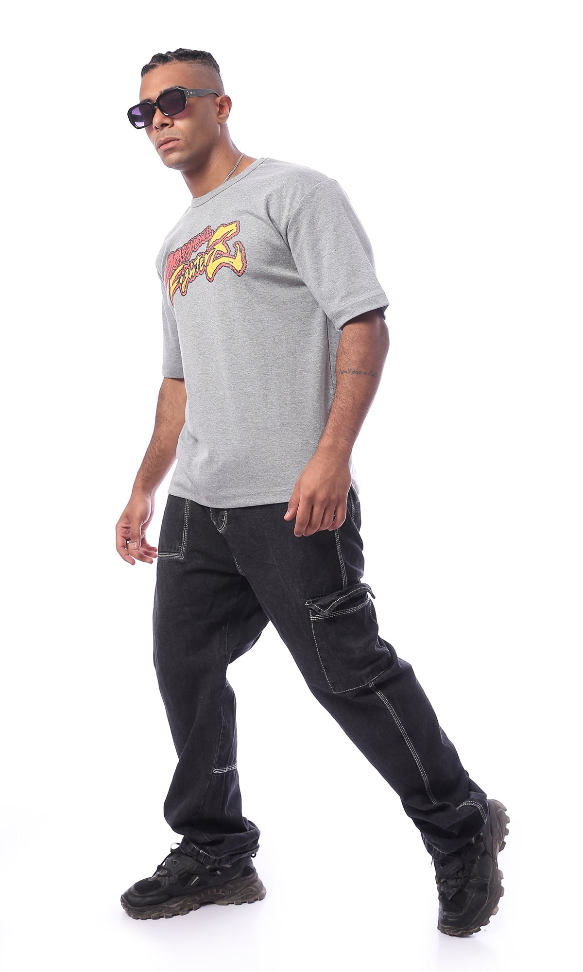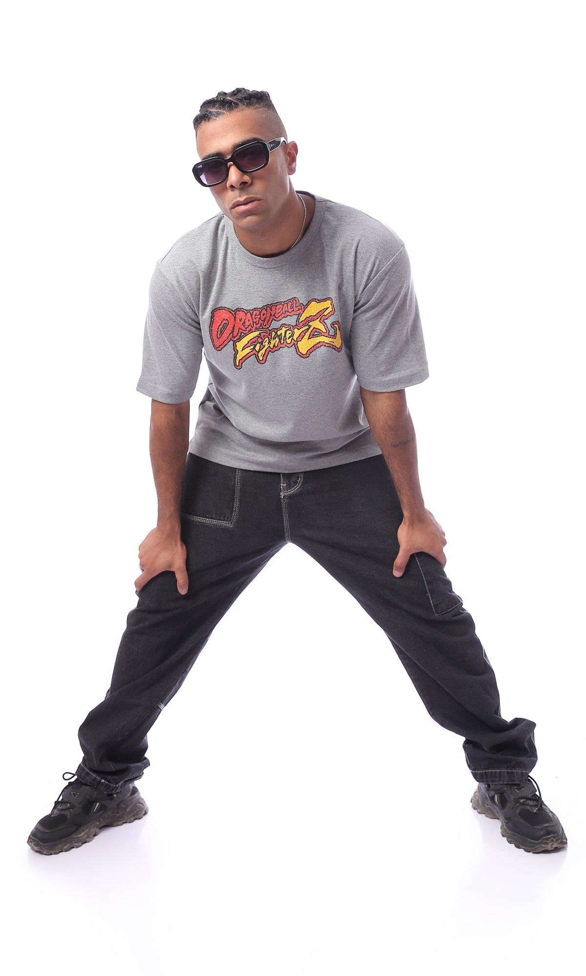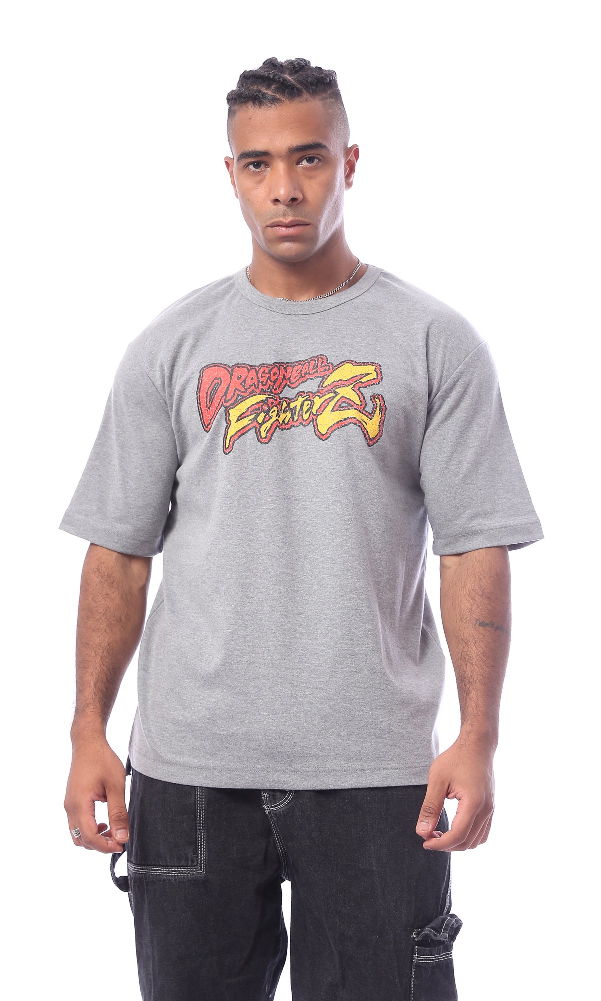 O163654 Grey "Dragon Ball" Printed Round Neck Slip On Tee