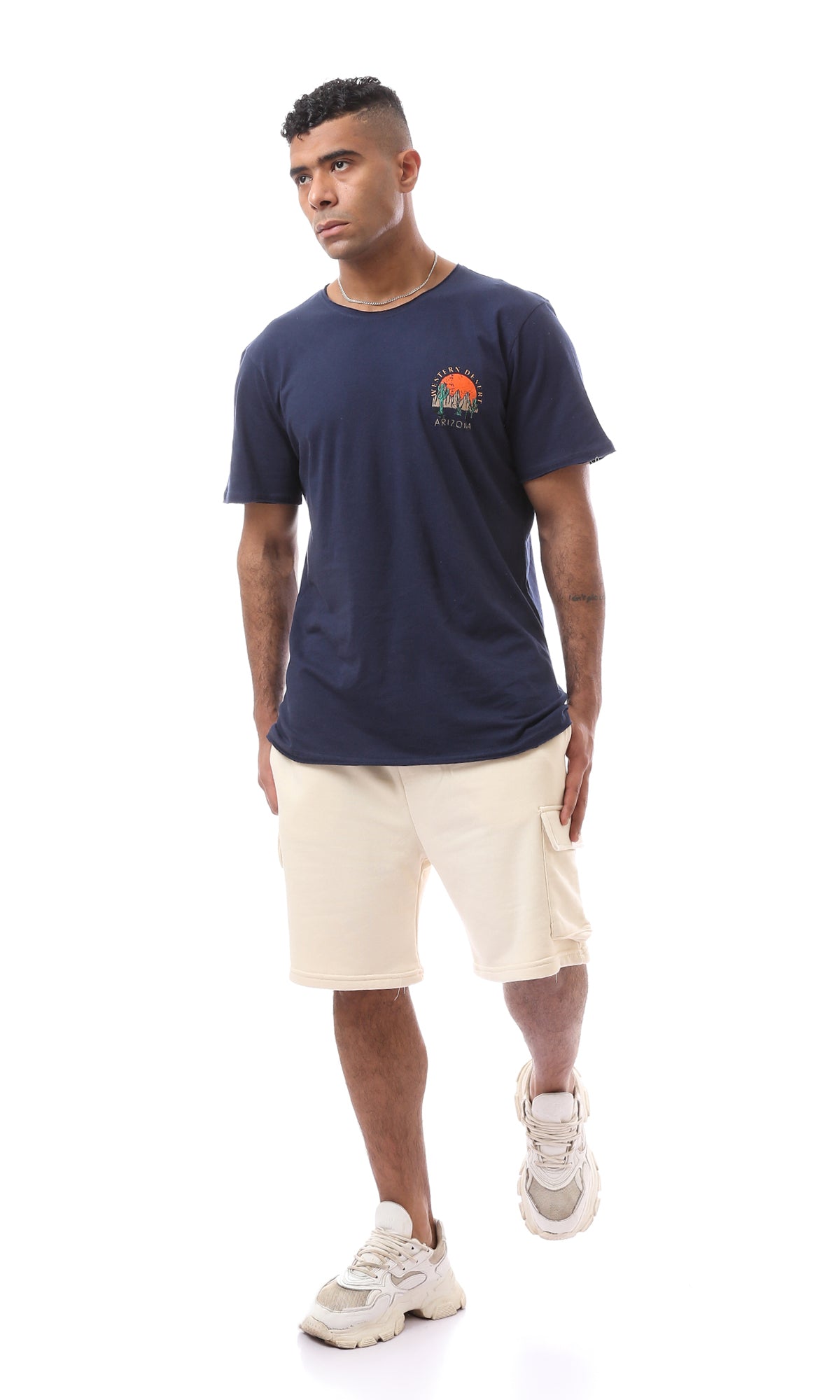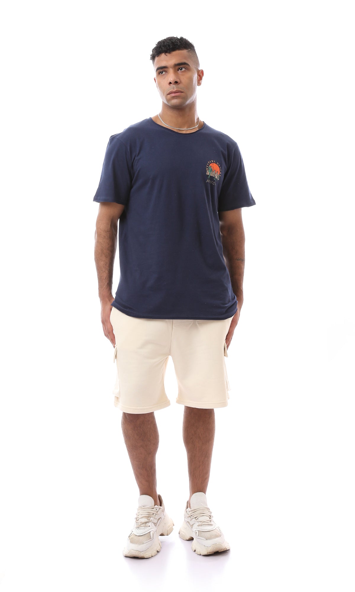 O164611 Fashioned Navy Blue T-Shirt With Front & Back Printed Pattern