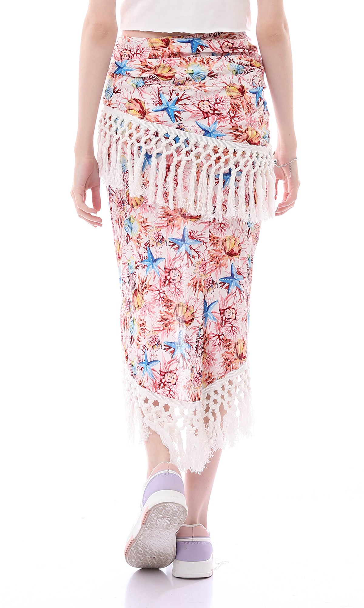 O165302 Colorful Asymmetric Zipped Skirt With Tassels
