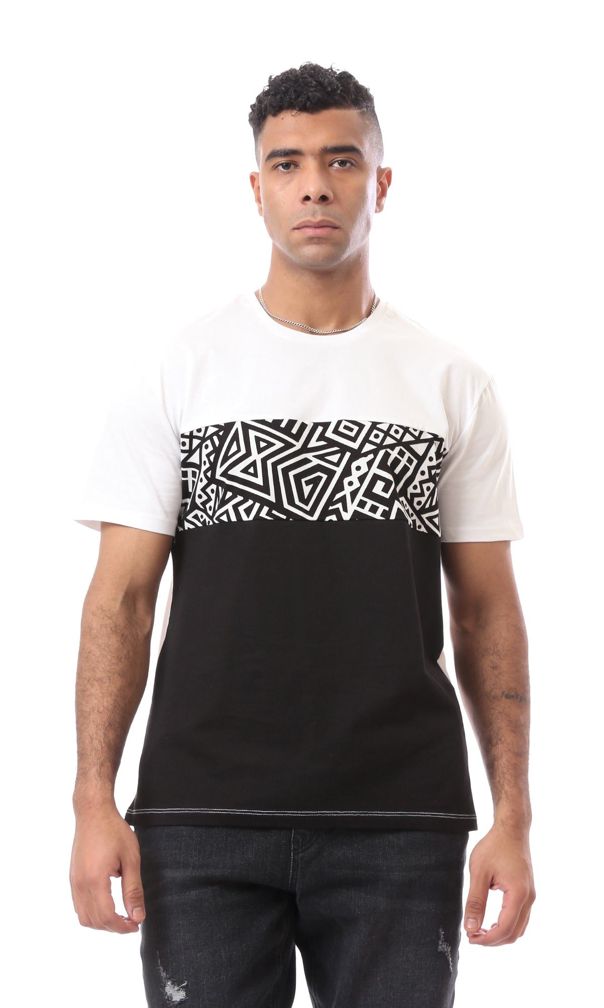 O167197 Bi-Tone White & Black Solid With Patterned Regular Tee