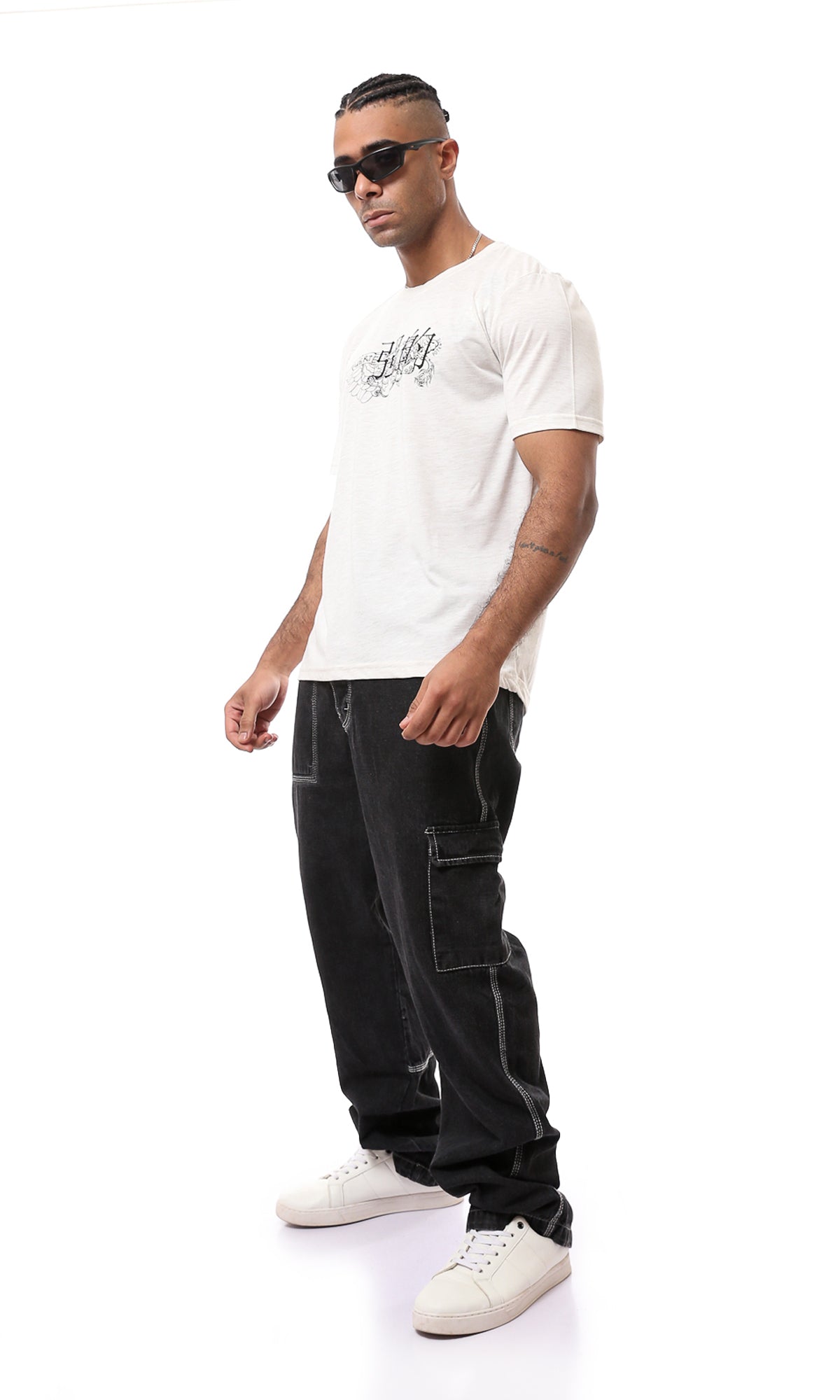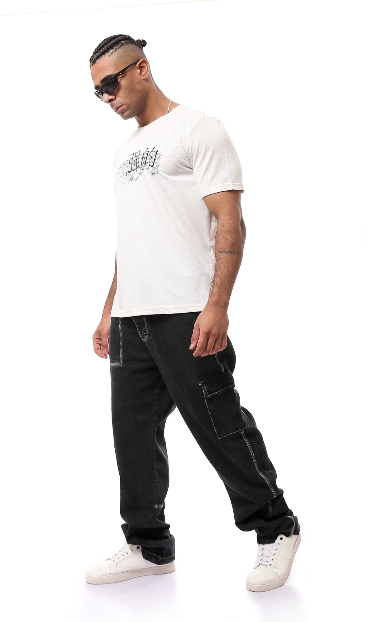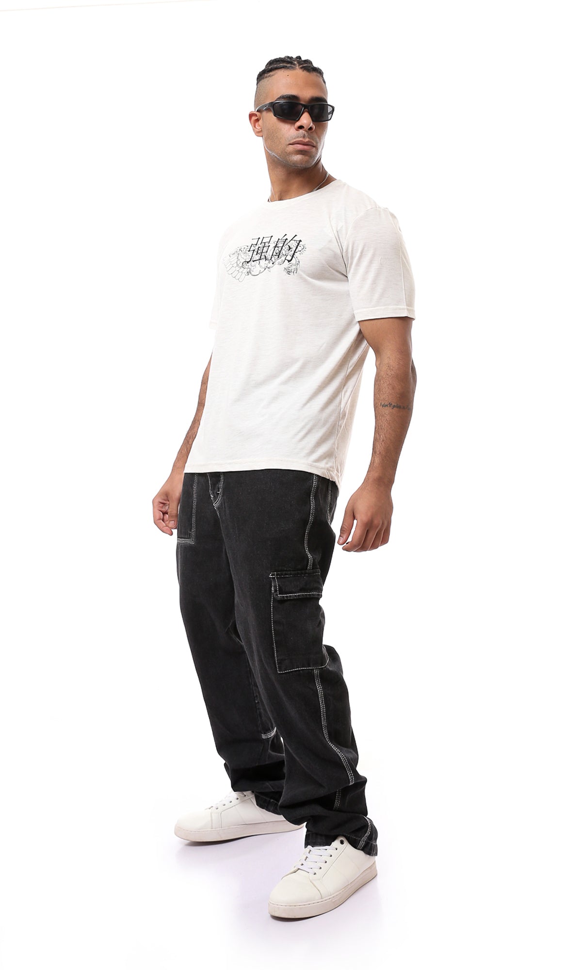 O168117 Heather Off-White Printed Short Sleeves Tee