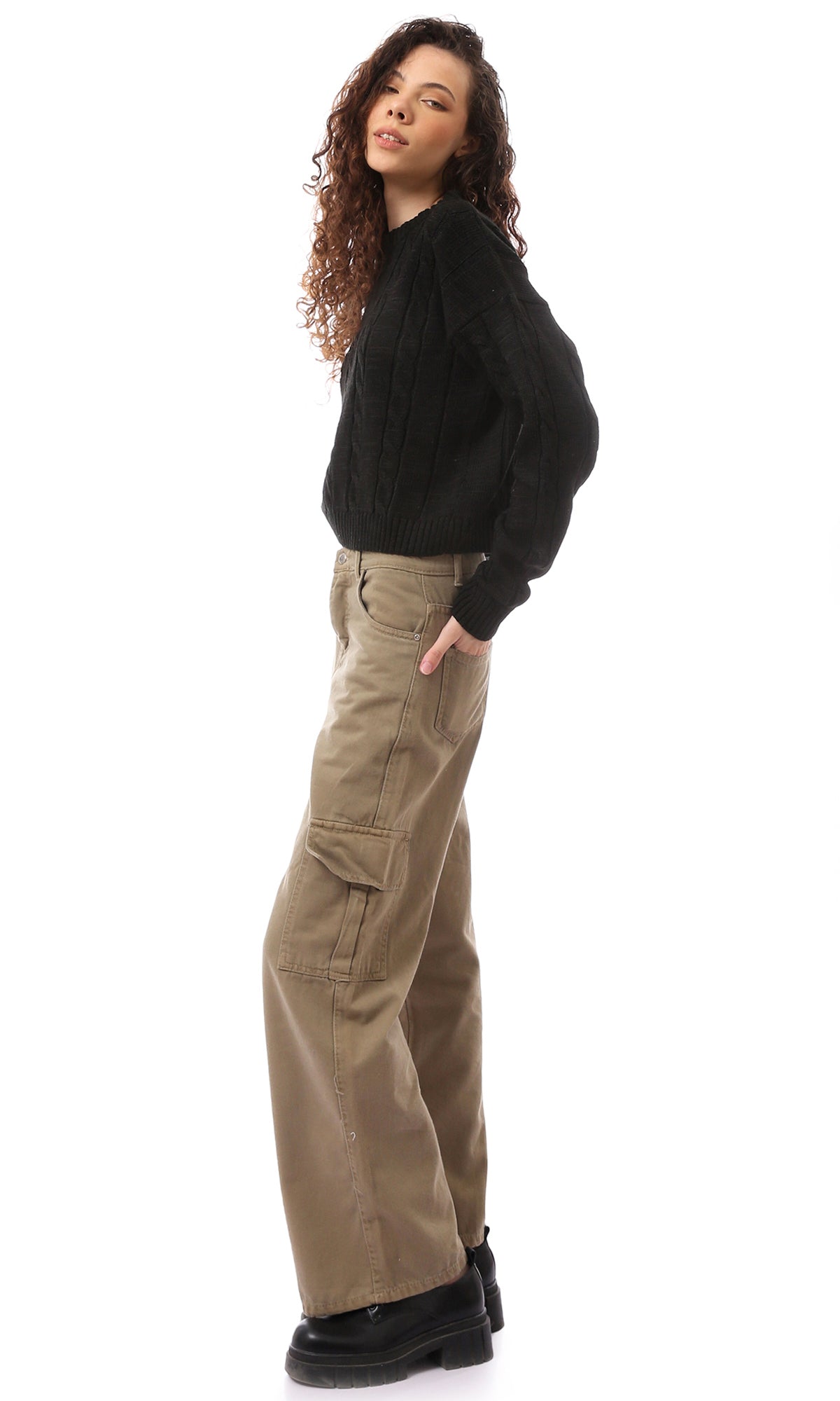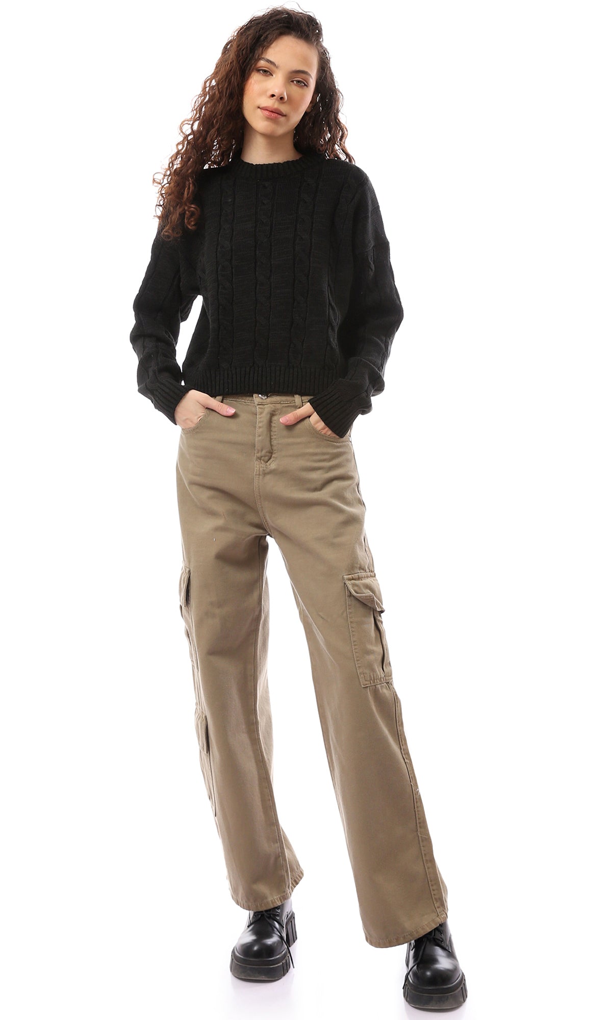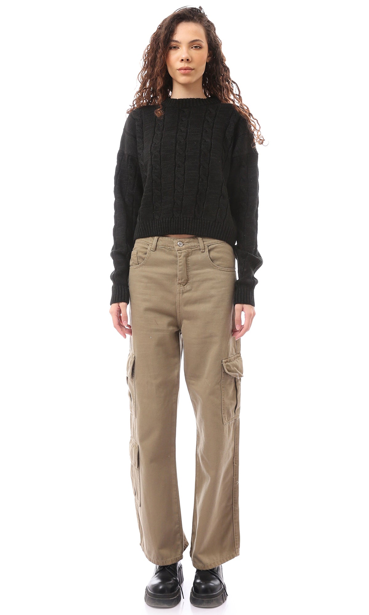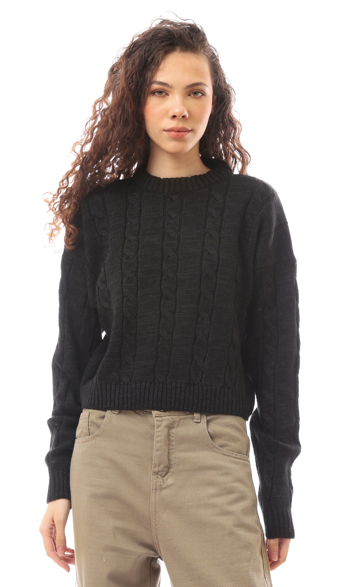 O169346 Black Rounded Neck Slip On Acrylic Pullover