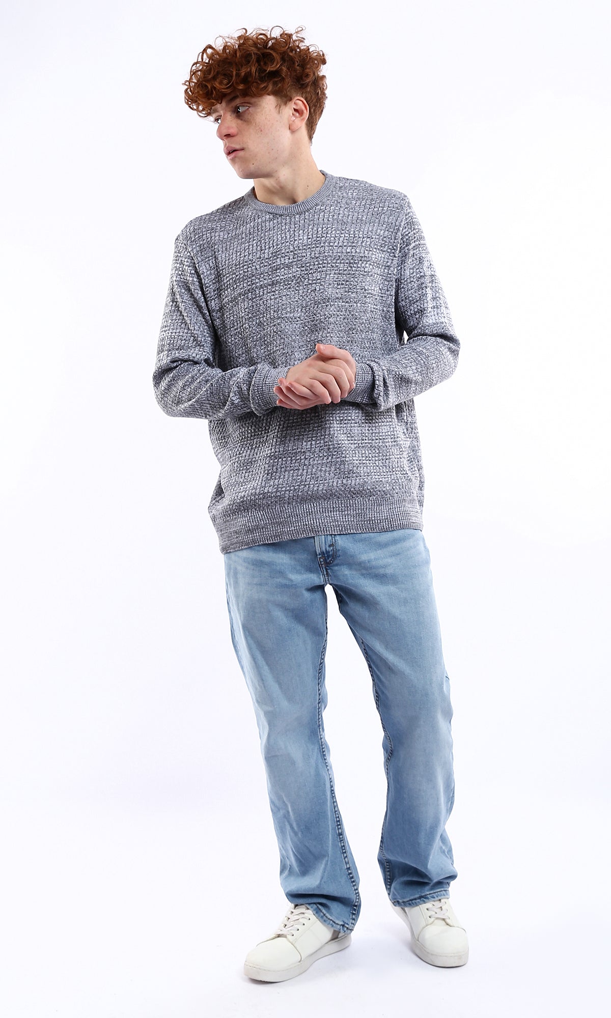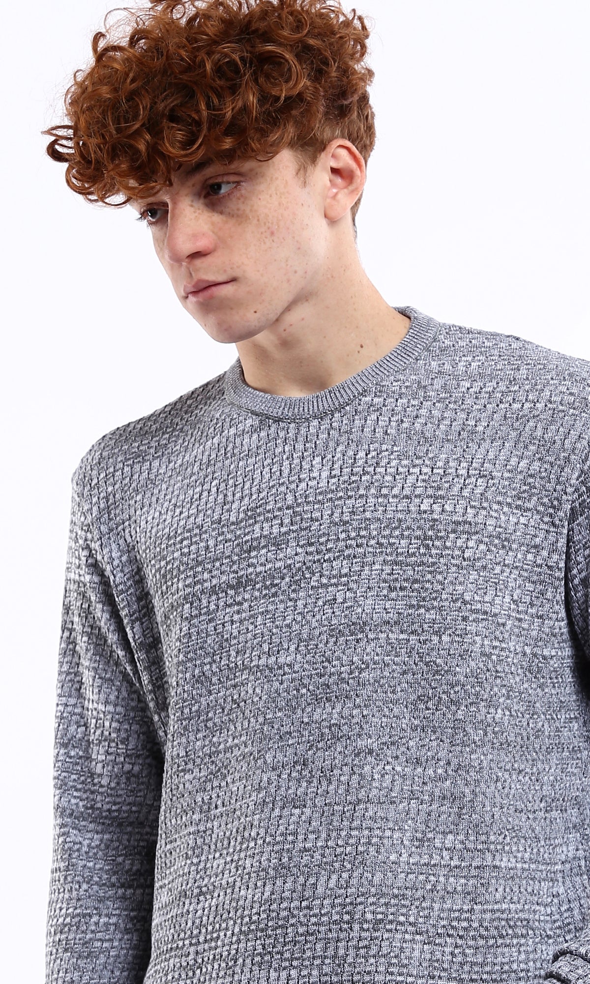 O175246 Round Neck Knitted Grey & White Pullover