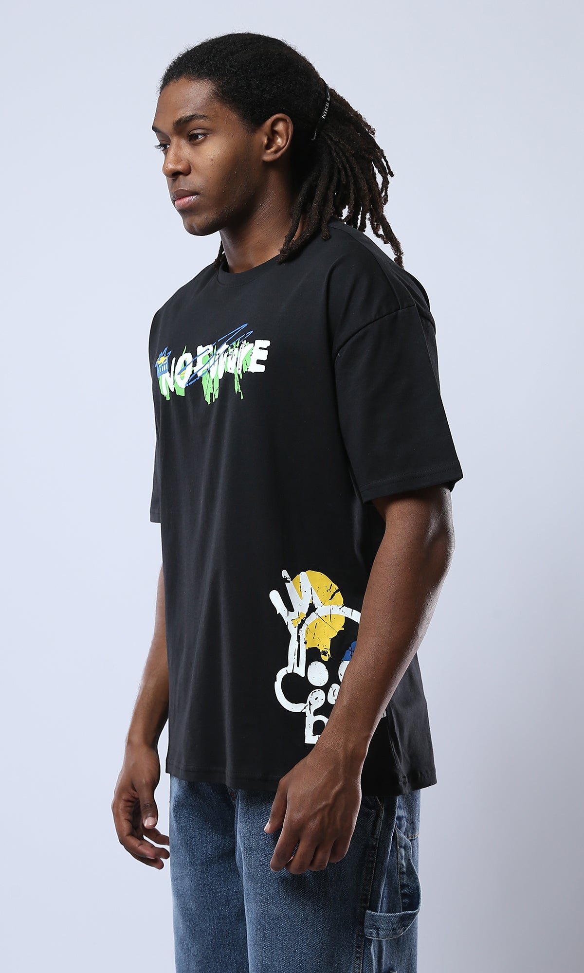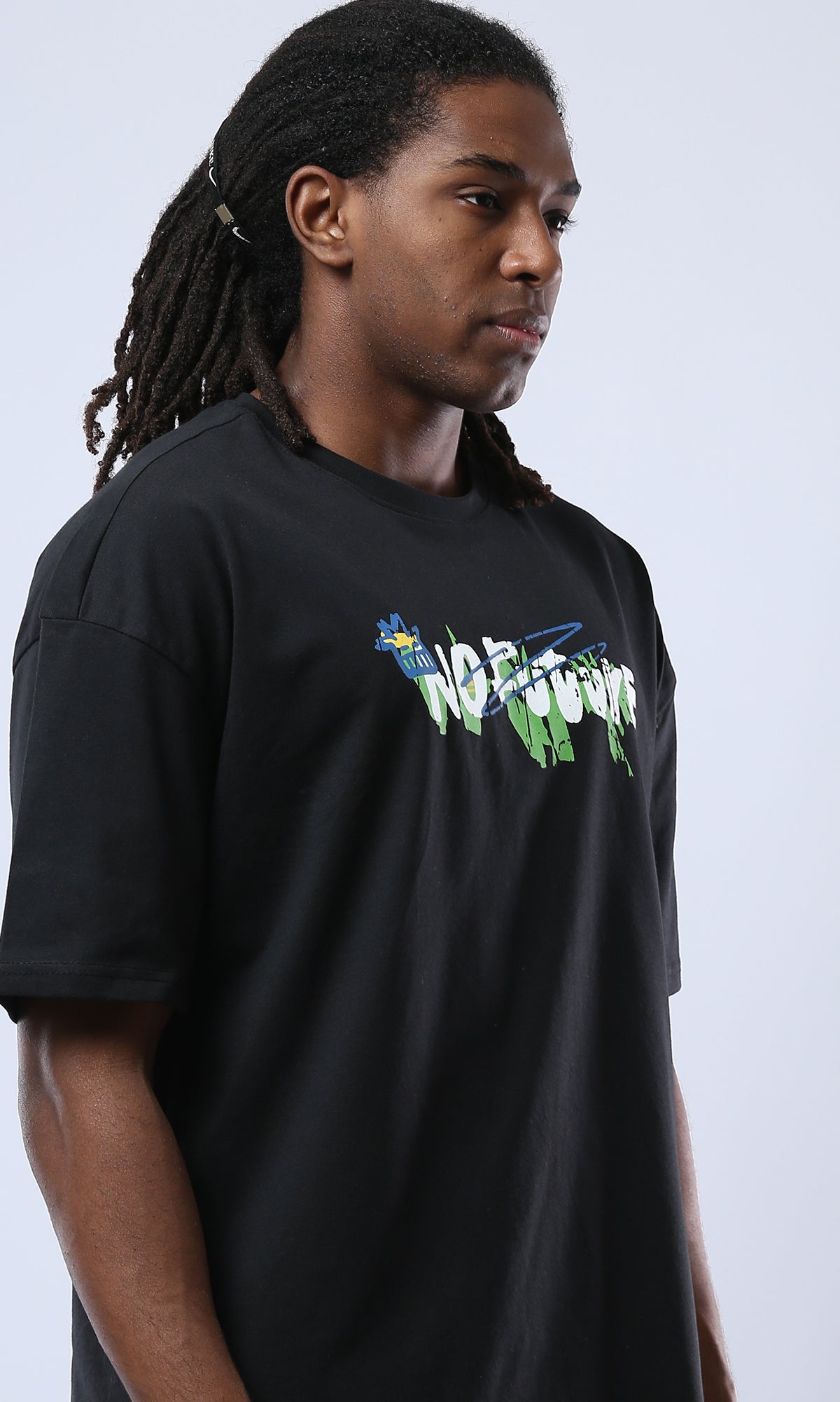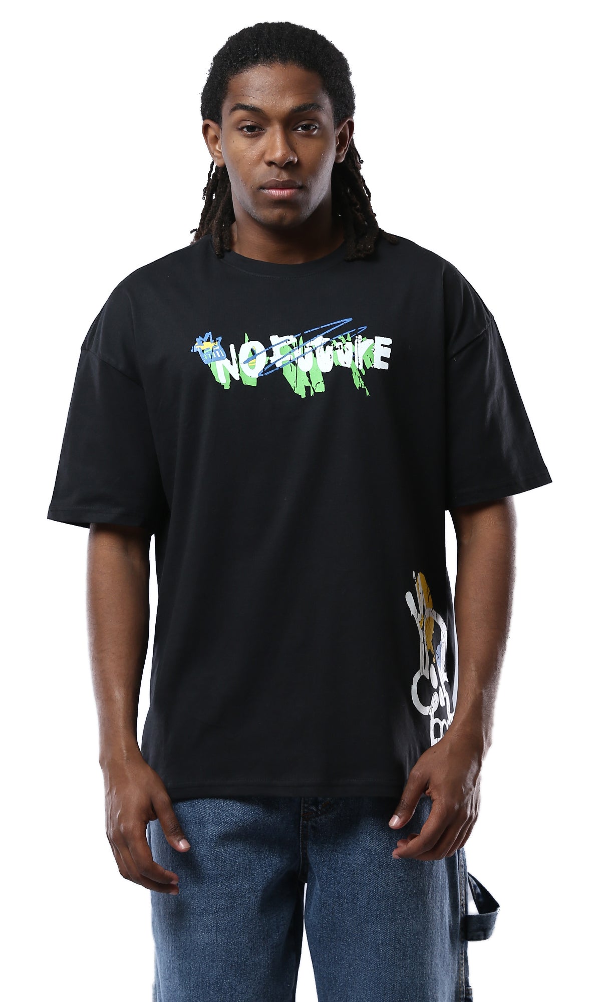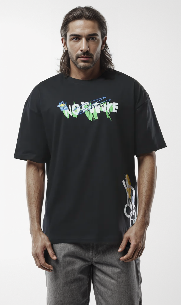 O178399 Printed Black Tee With Comfy Elbow-Sleeves