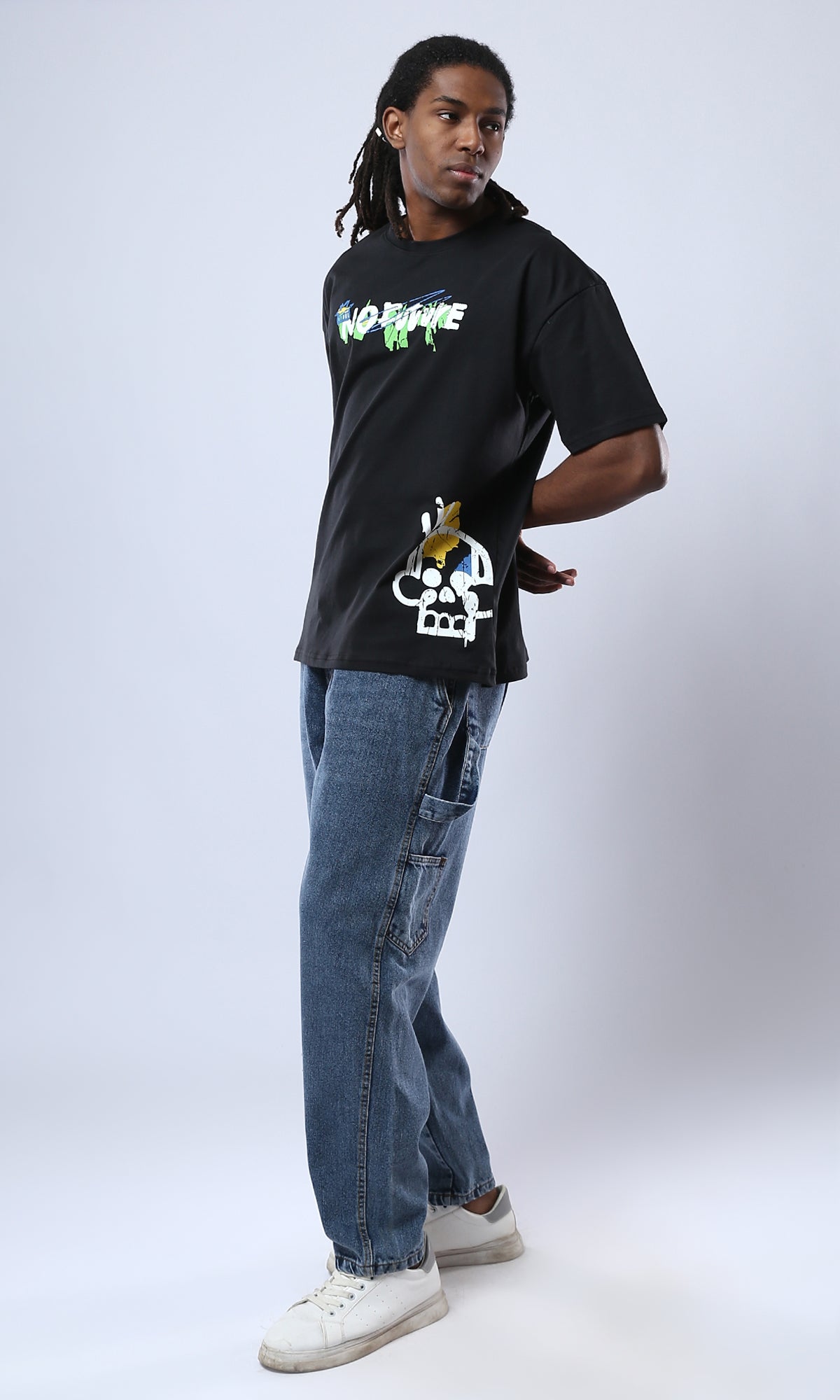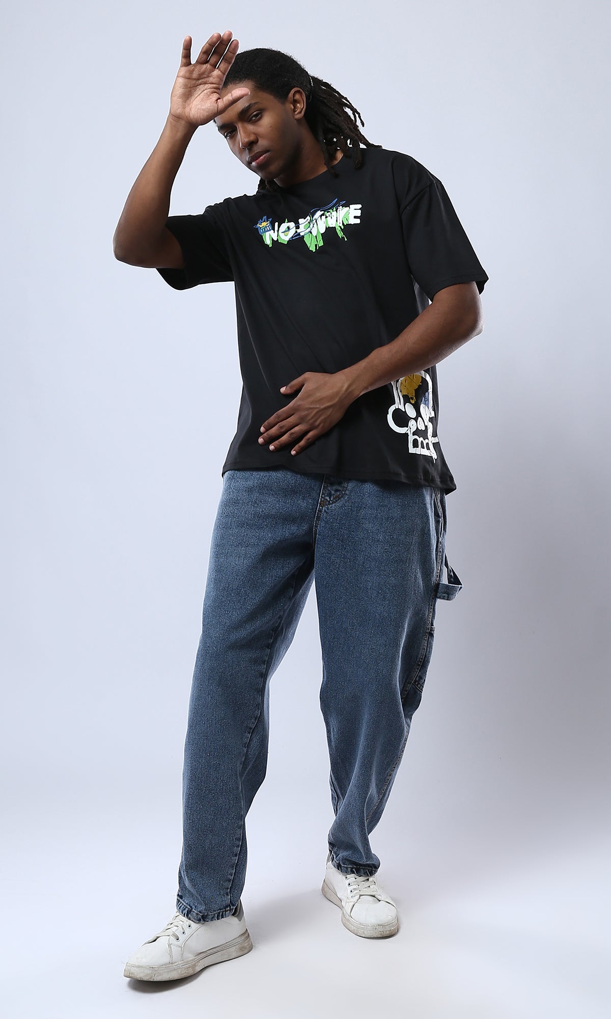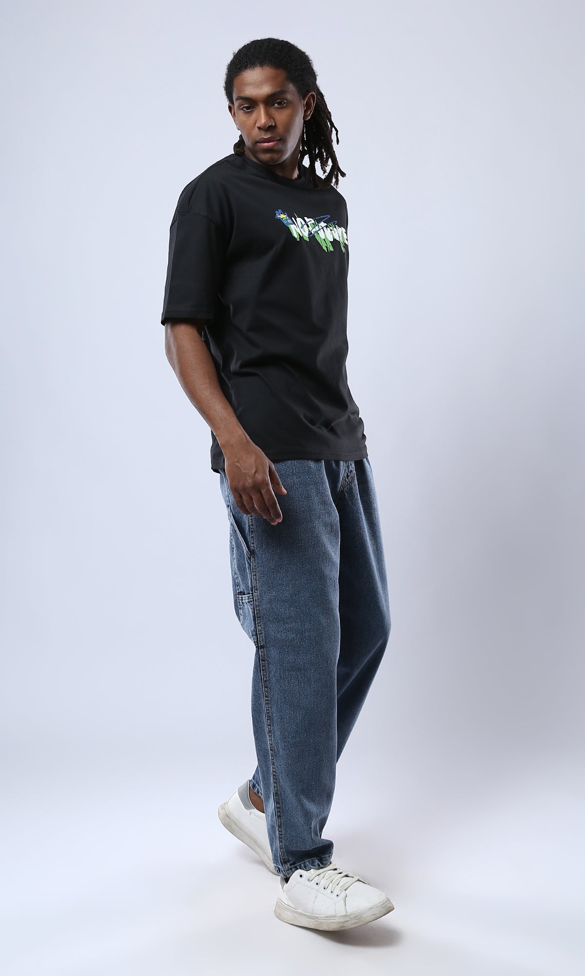O178399 Printed Black Tee With Comfy Elbow-Sleeves