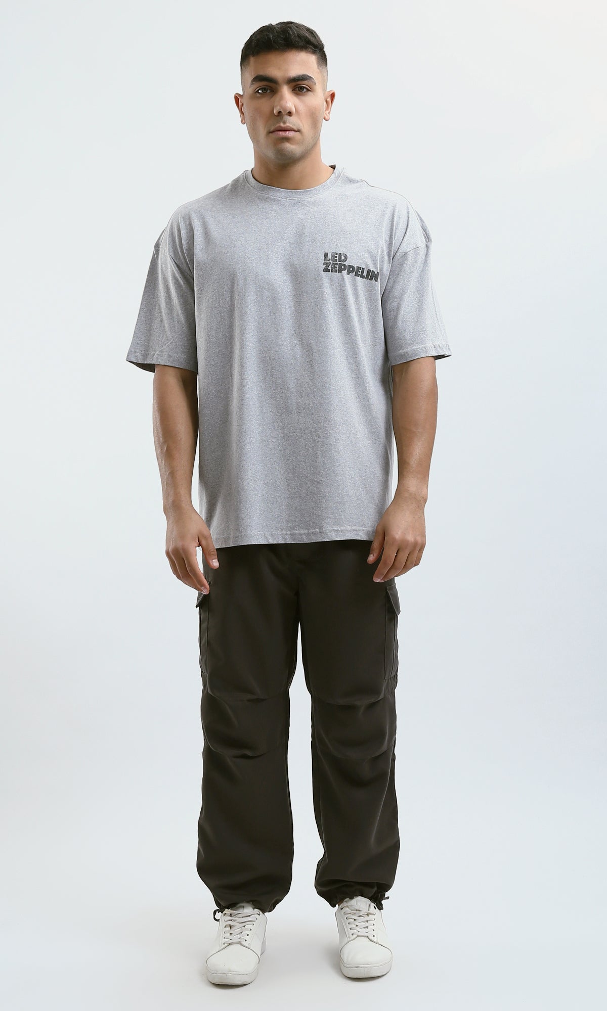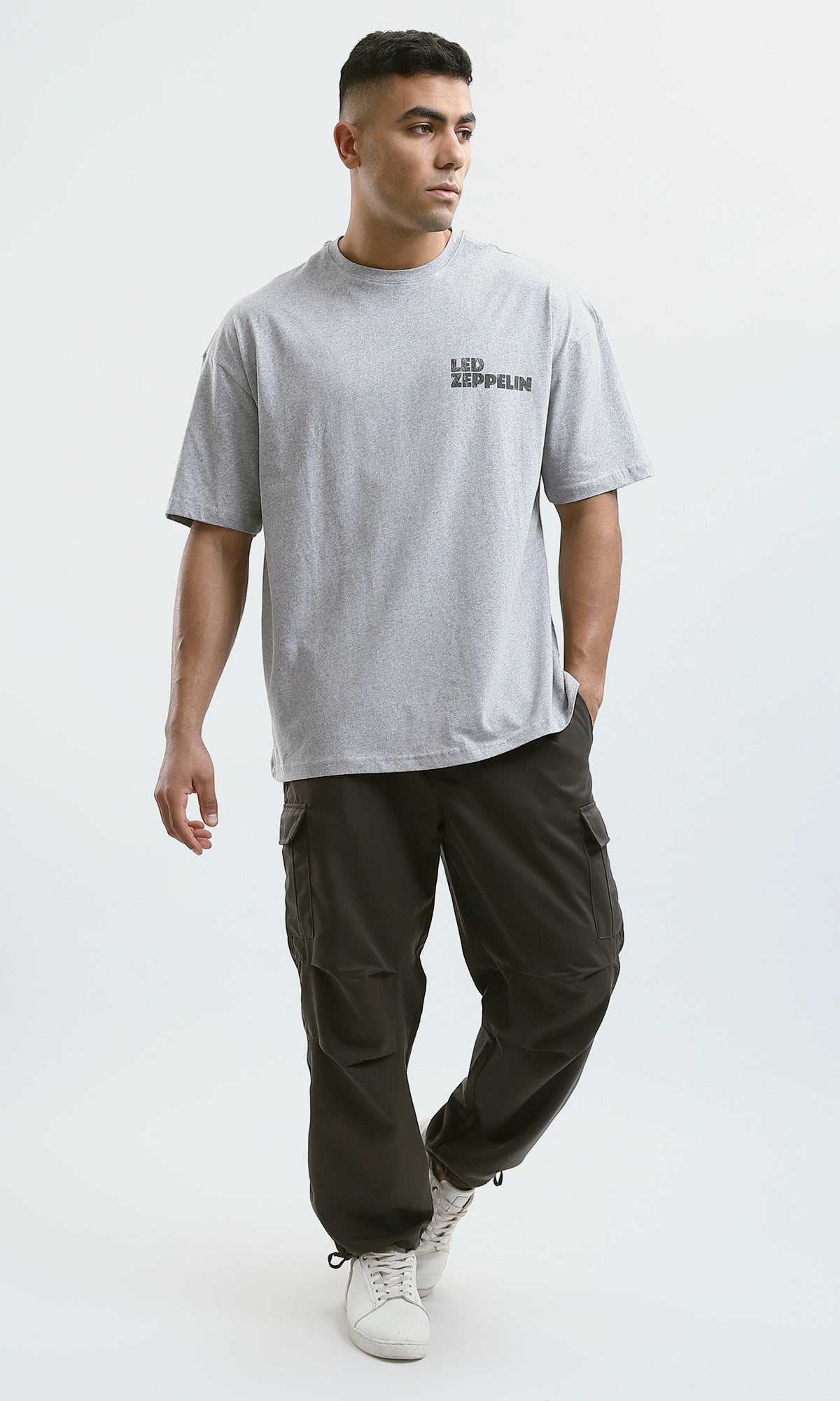 O179040 "Led Zeppelin" Printed Elbow Sleeves Heather Grey Tee