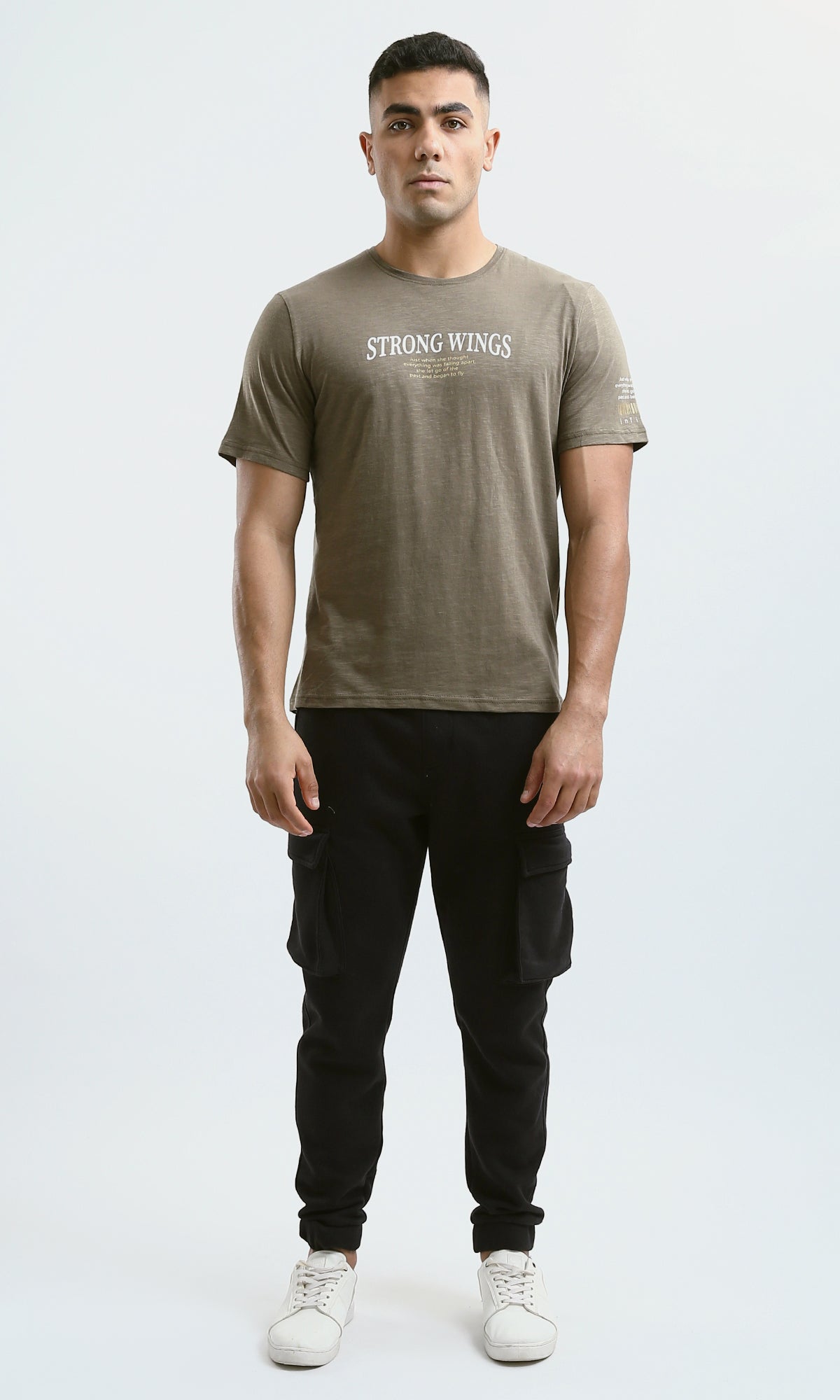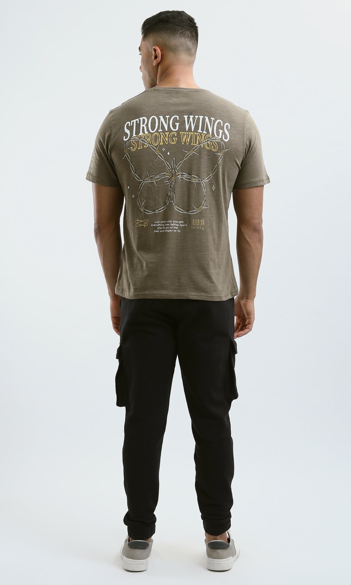 O179359 "Strong Wings" Heather Dark Khaki Short Sleeves Tee