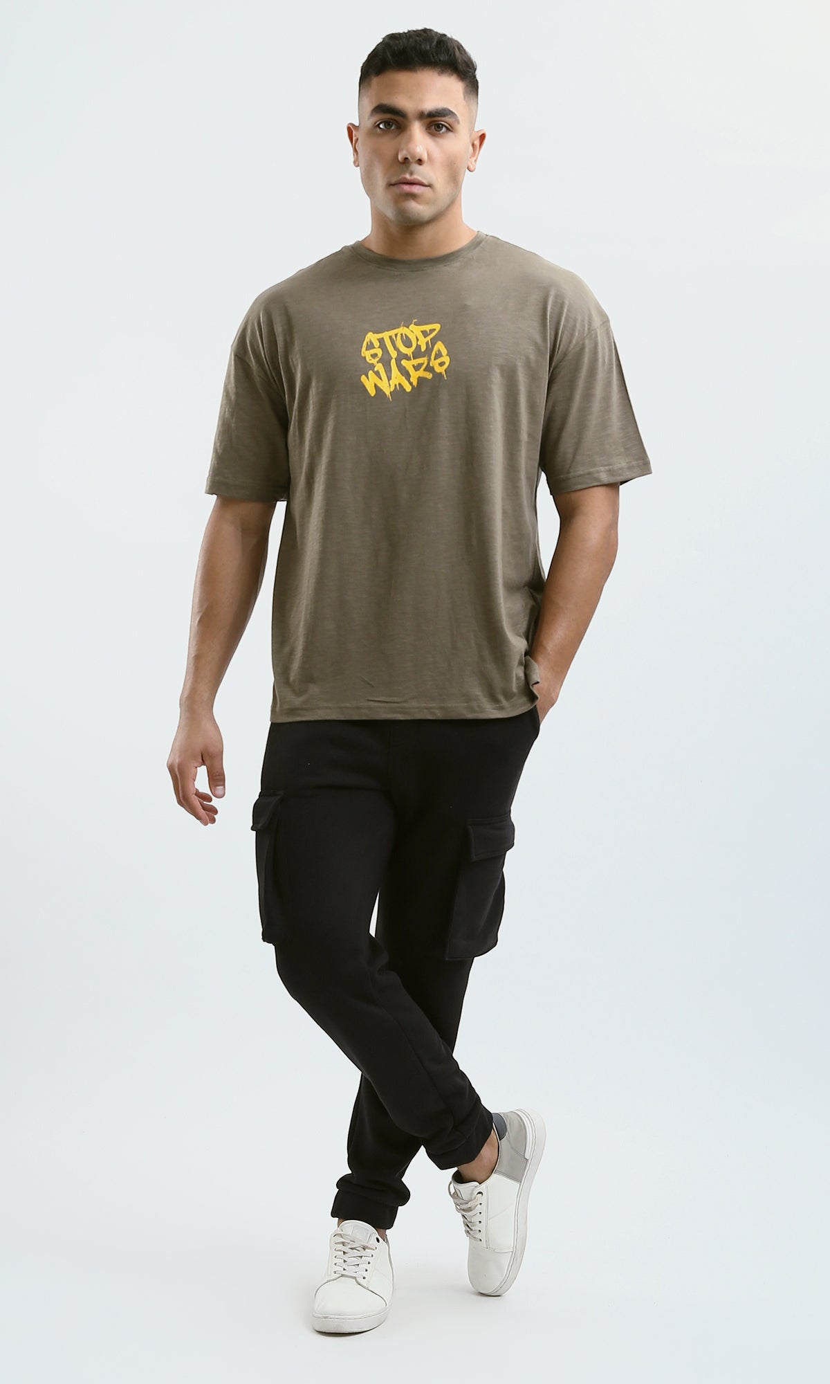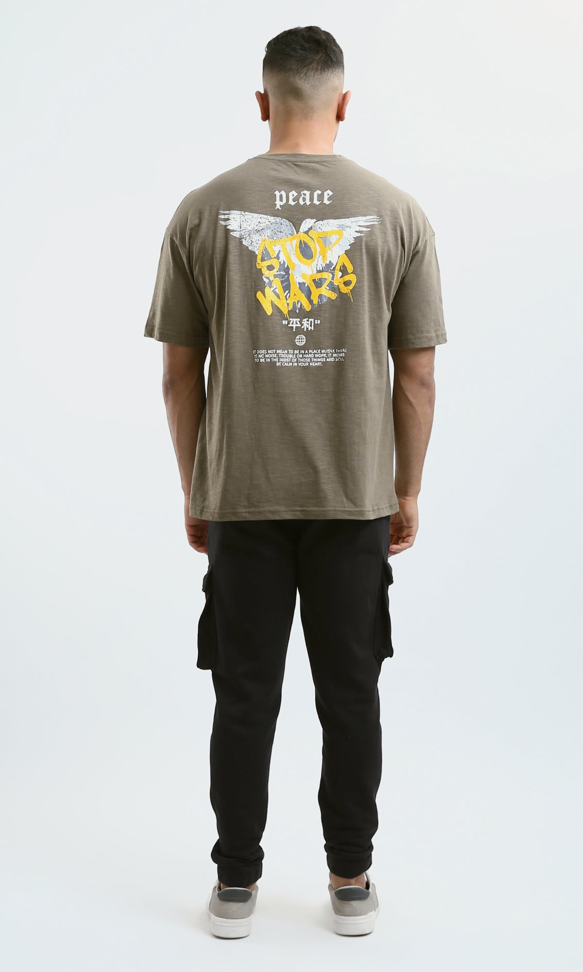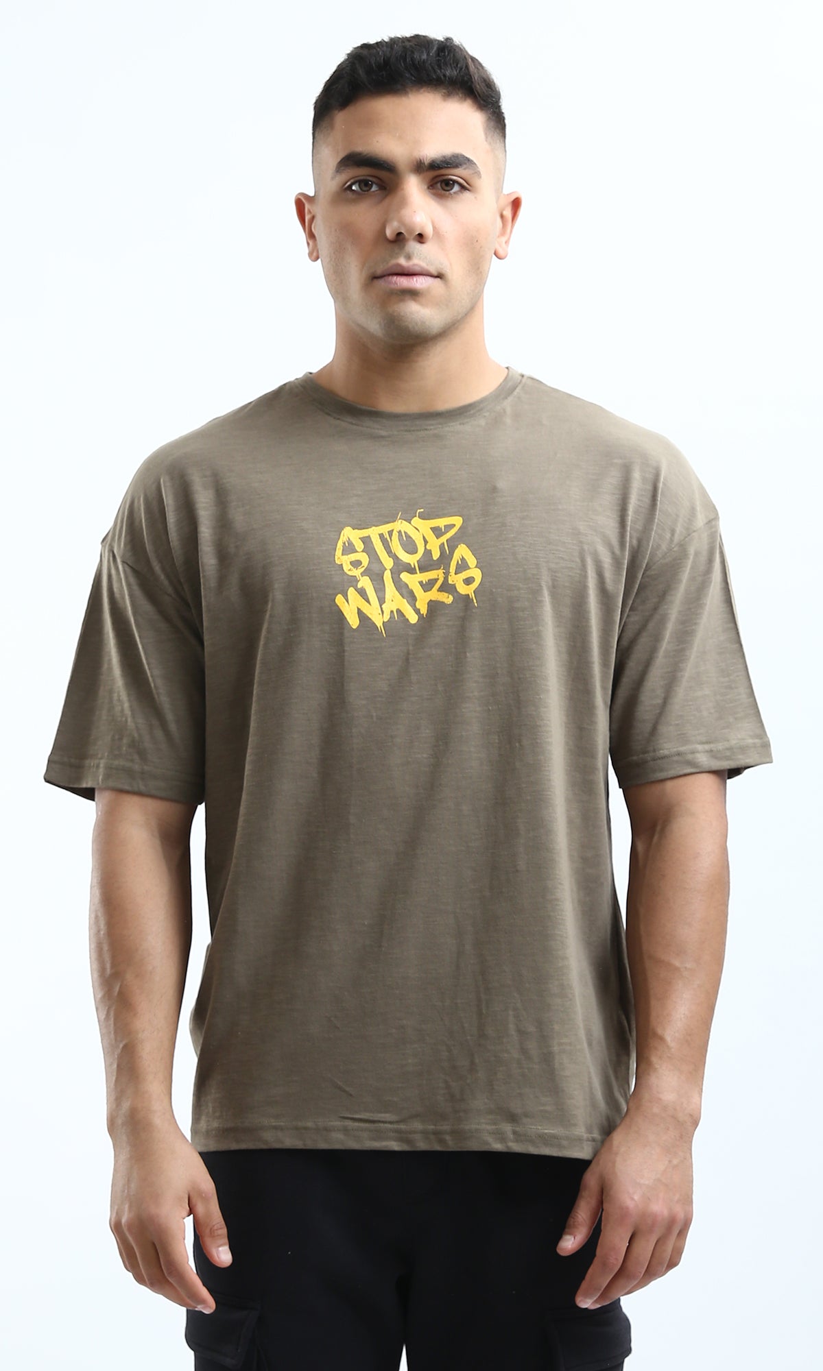 O179365 Printed "Stop Wars" Relaxed Fit Heather Dark Khaki Tee