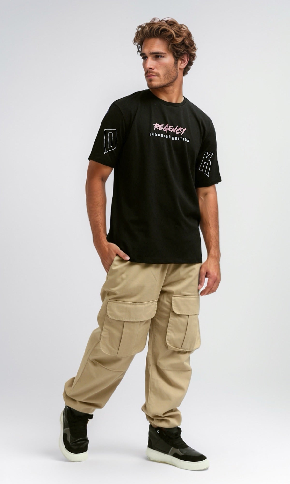 O182435 Printed "Regency" Slip On T-Shirt - Black