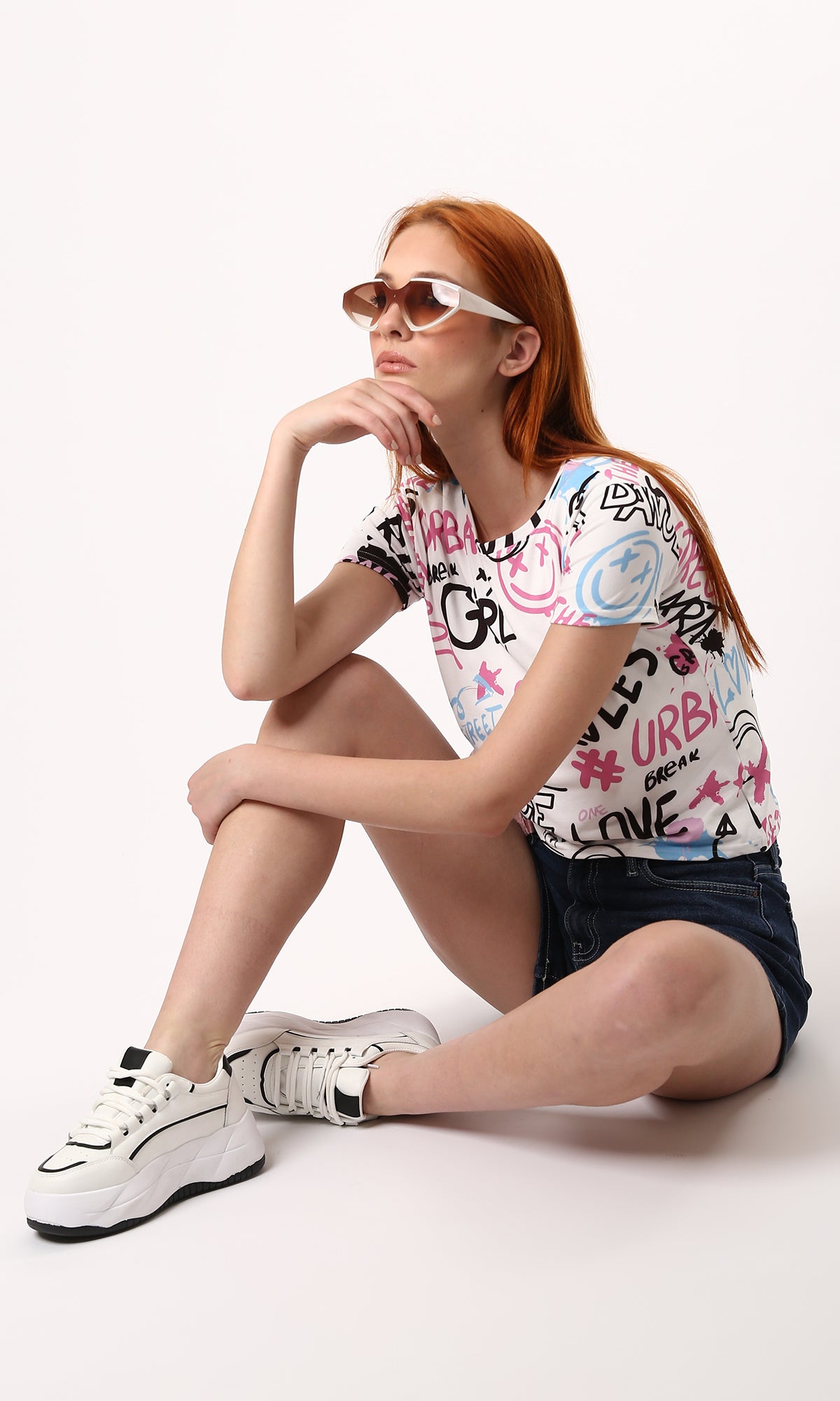 O182837 Feminine Short Sleeves Multicolour Trendy Tee