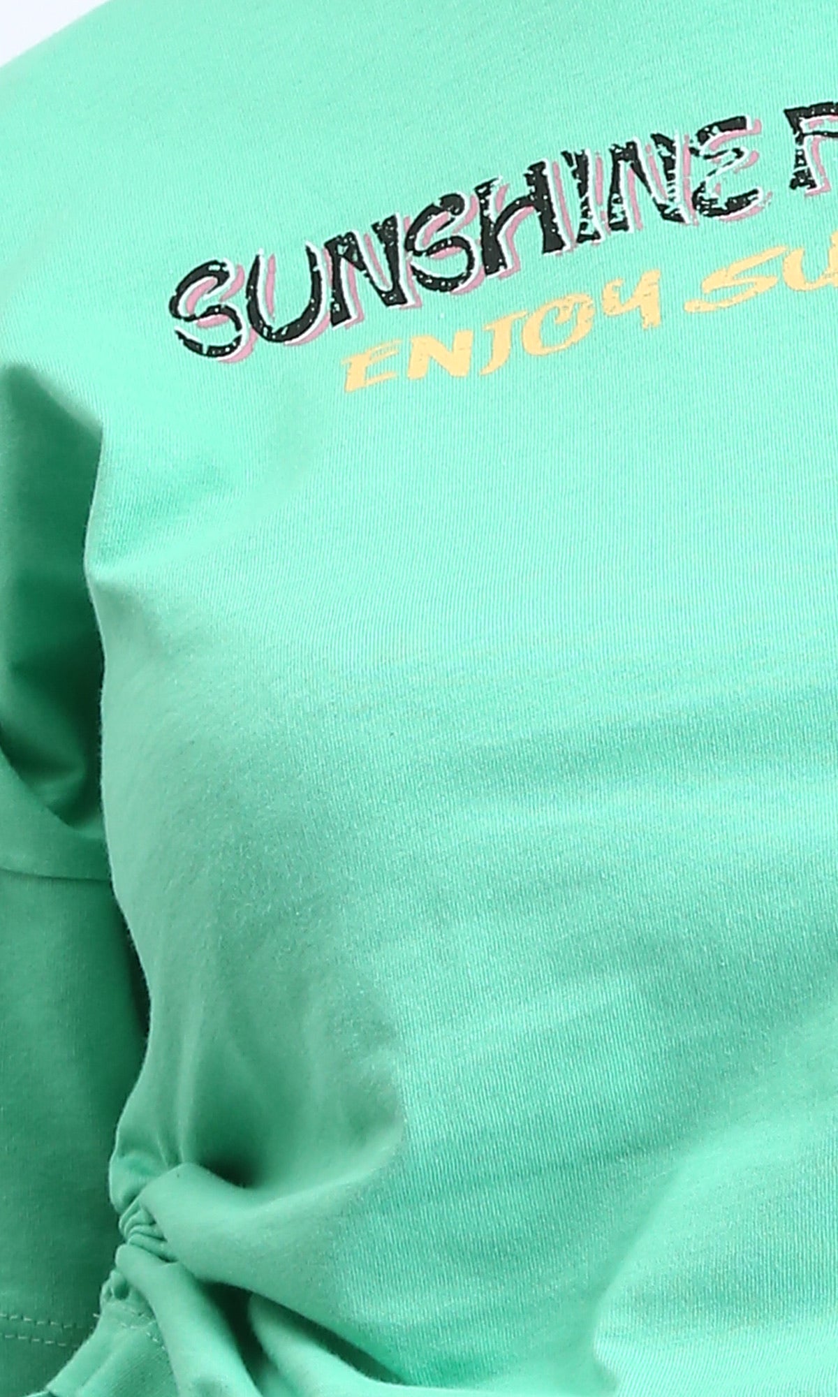 O203163 - Printed Short Tee with Side Drawstring - Light Green
