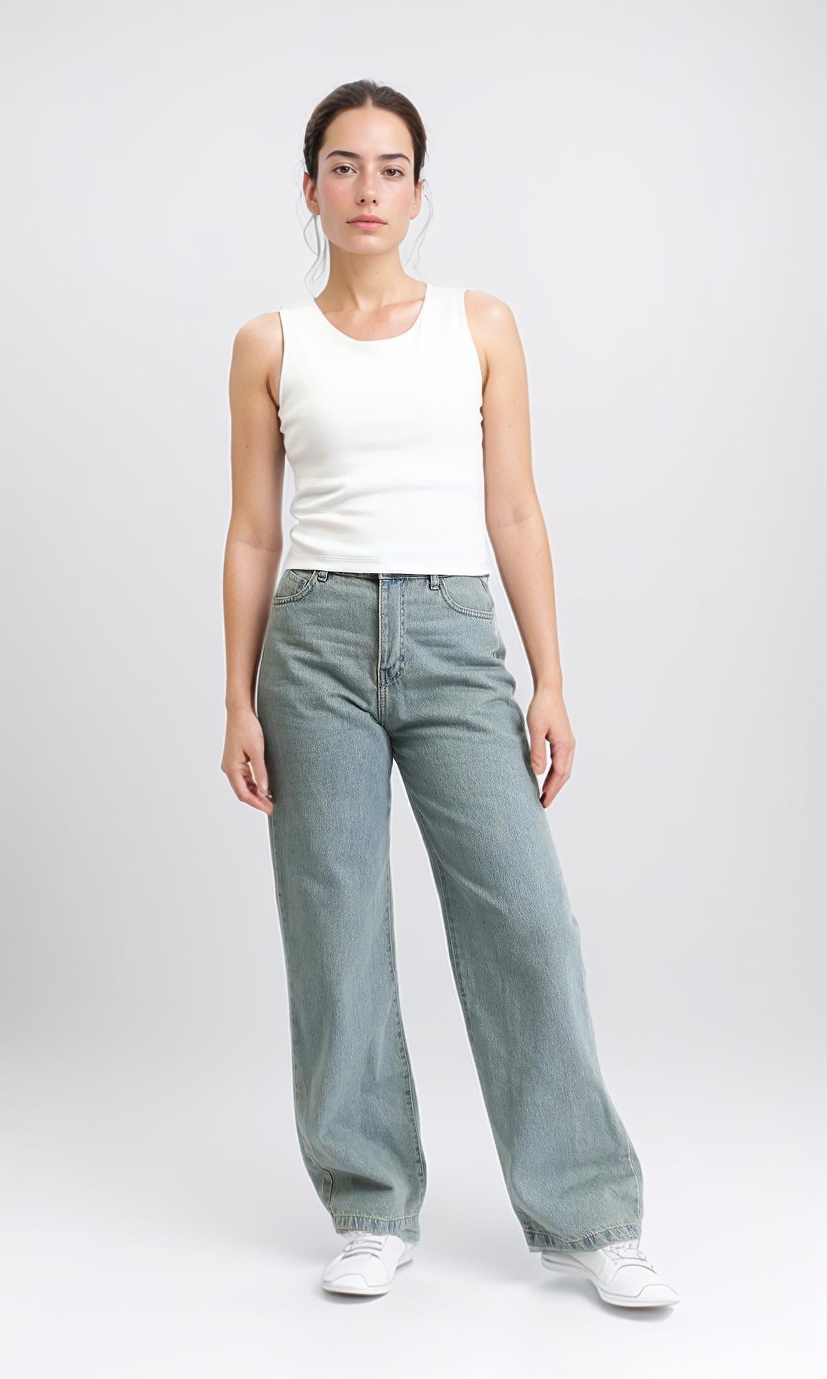 R205930 - Trendy Solid Wide Leg Jeans - Dirty Blue