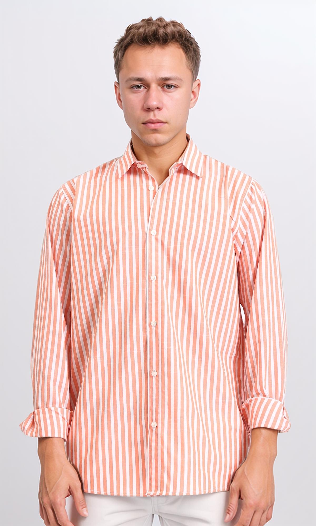 R206112 - Long Sleeves Striped Casual Shirt - Light Orange & White