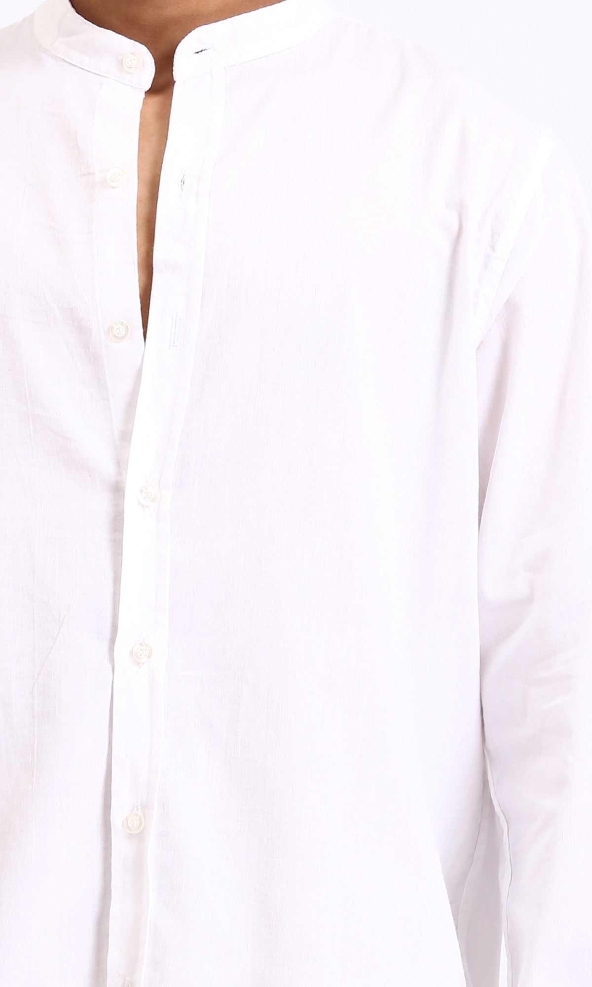 R206984 - Long Sleeves Solid Mandarin Shirt - White