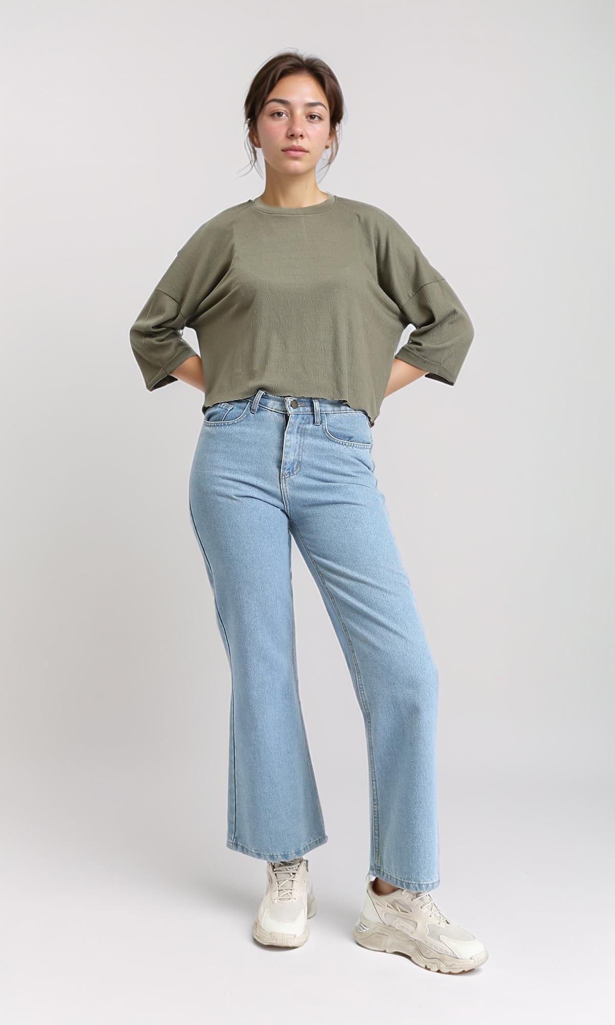 R207079 - Textured 3\4 Sleeves Relaxed Tee - Dark Olive