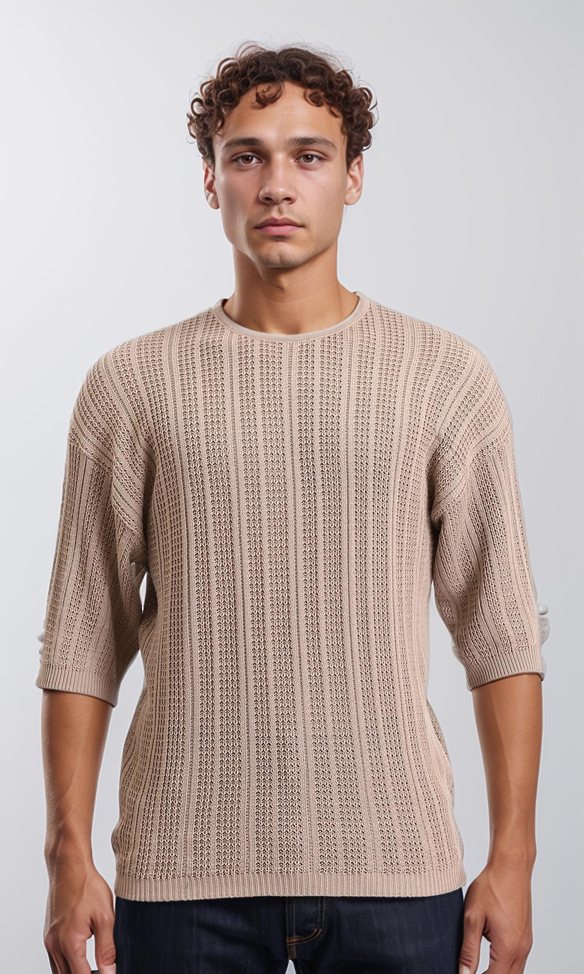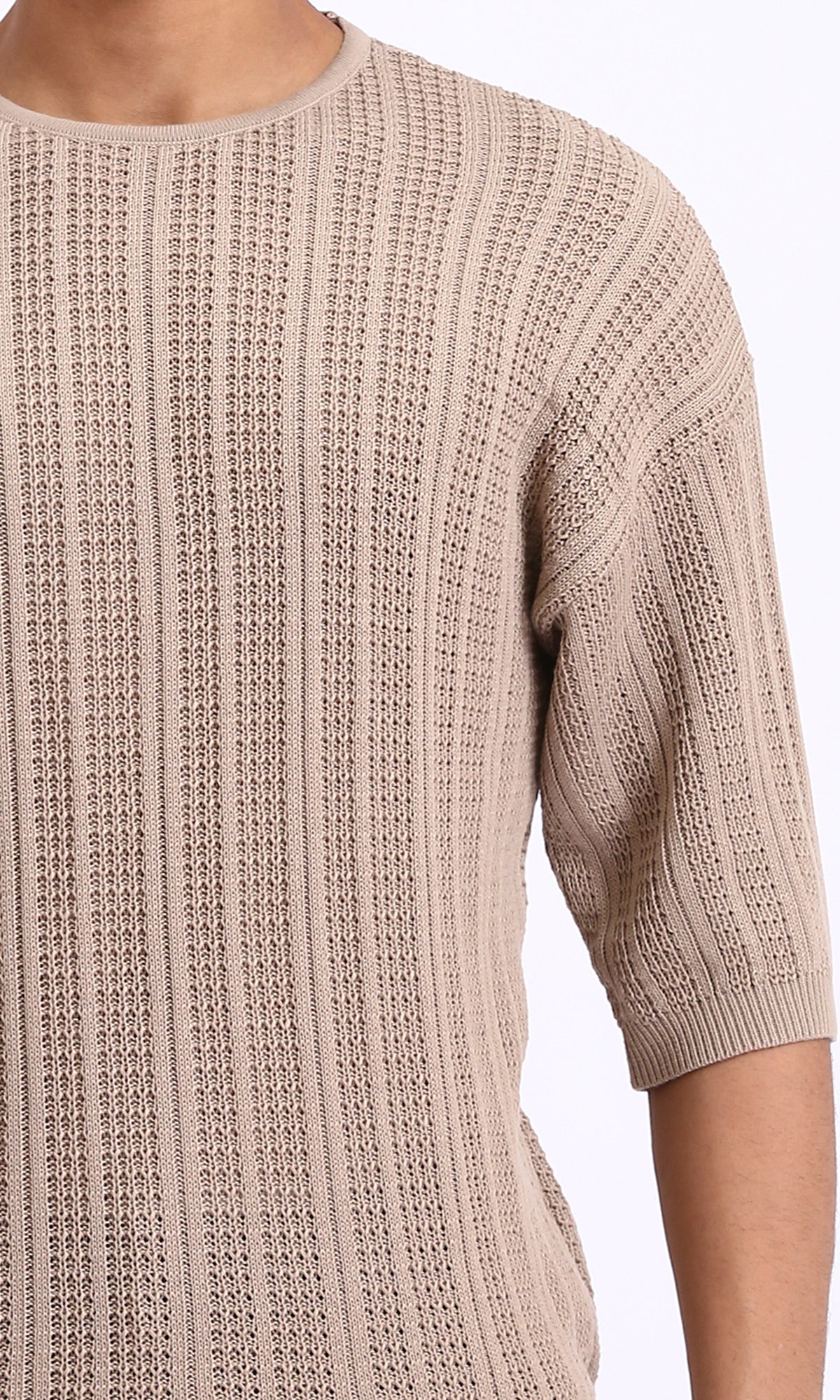 R207105 - Self Knit Slip On Casual Tee - Coffee